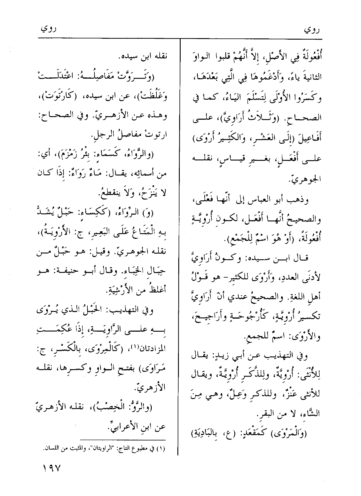 وذَهَبَ أَبو العبَّاس إِلَى أنَّها فَعْلَى والصَّحِيحُ أنَّها أَفْعَل لكَوْن {أُرْوِيَّةٍ أُفْعُولَةً، (أَو هُوَ اسمٌ للجَمْع) .