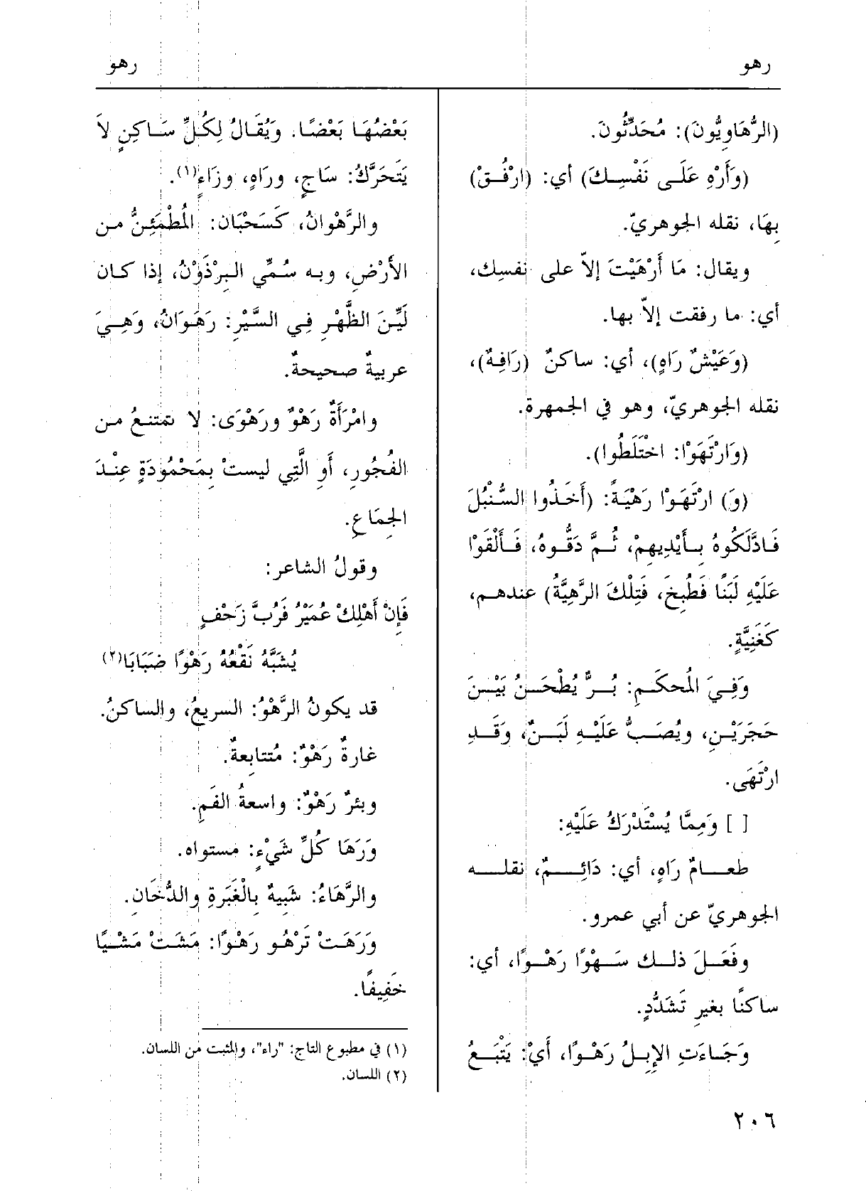 (وعَيْشٌ {راهٍ) : أَي ساكِنٌ (راِفهٌ) ؛ نَقَلَهُ الجوهرِيُّ، وَهُوَ فِي الجَمْهَرَةِ.