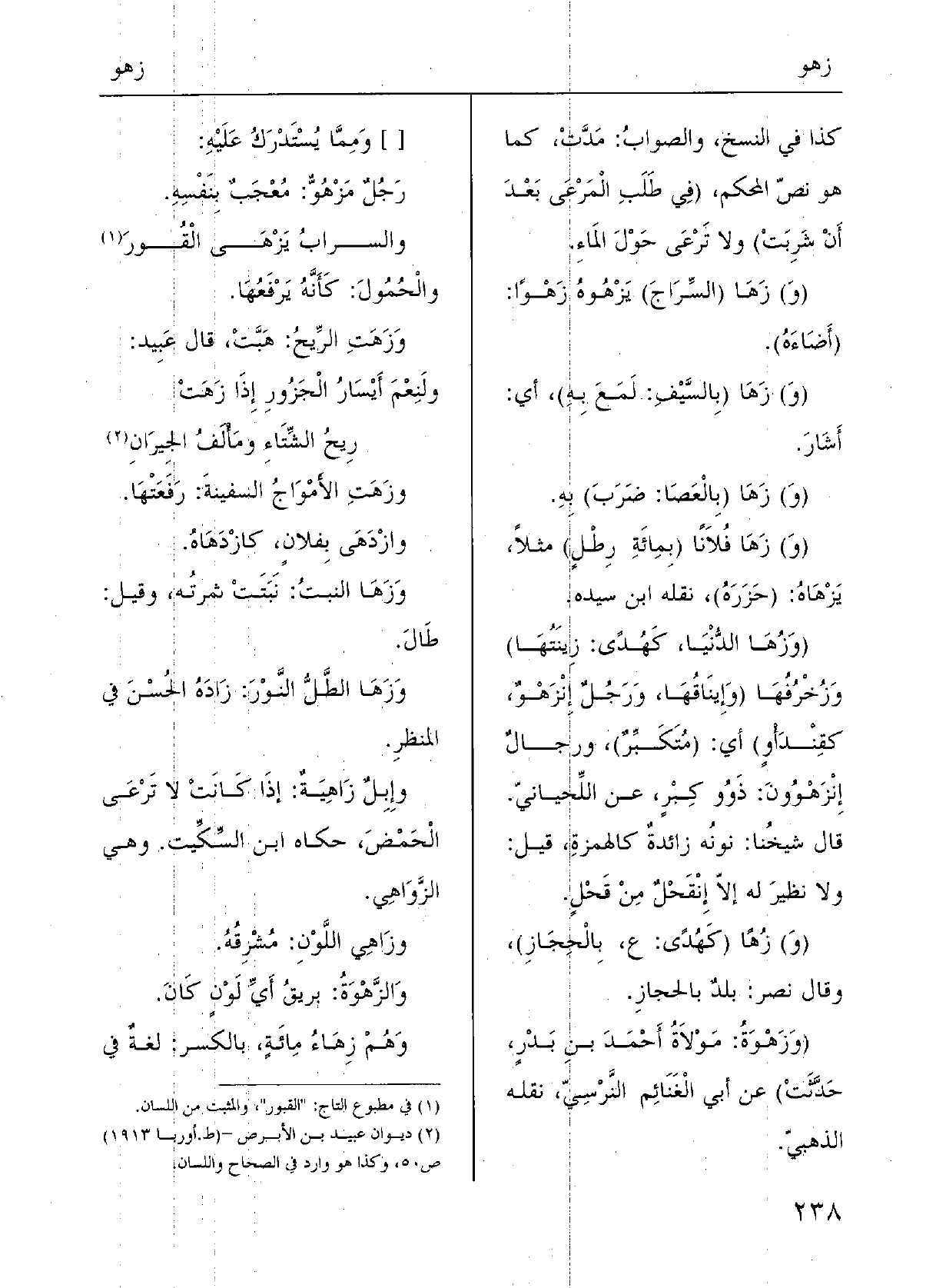 (و) زَها (السِّراجَ) {يَزْهُوهُ} زَهْواً: (أَضاءَهُ.