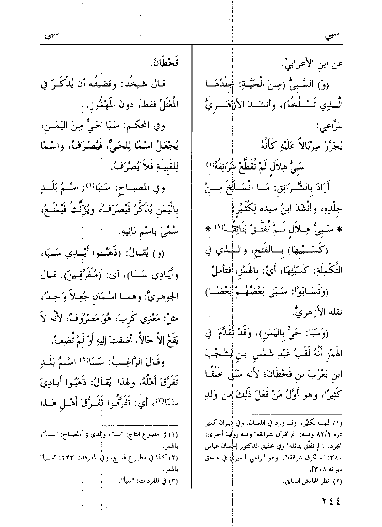وَفِي المُحْكَم:! سَبَا حَيٌّ مِن اليَمَنِ يُجْعَلُ اسْماً للحَيِّ فيُصْرفُ، واسْماً للقَبِيلةِ فَلَا يُصْرف.