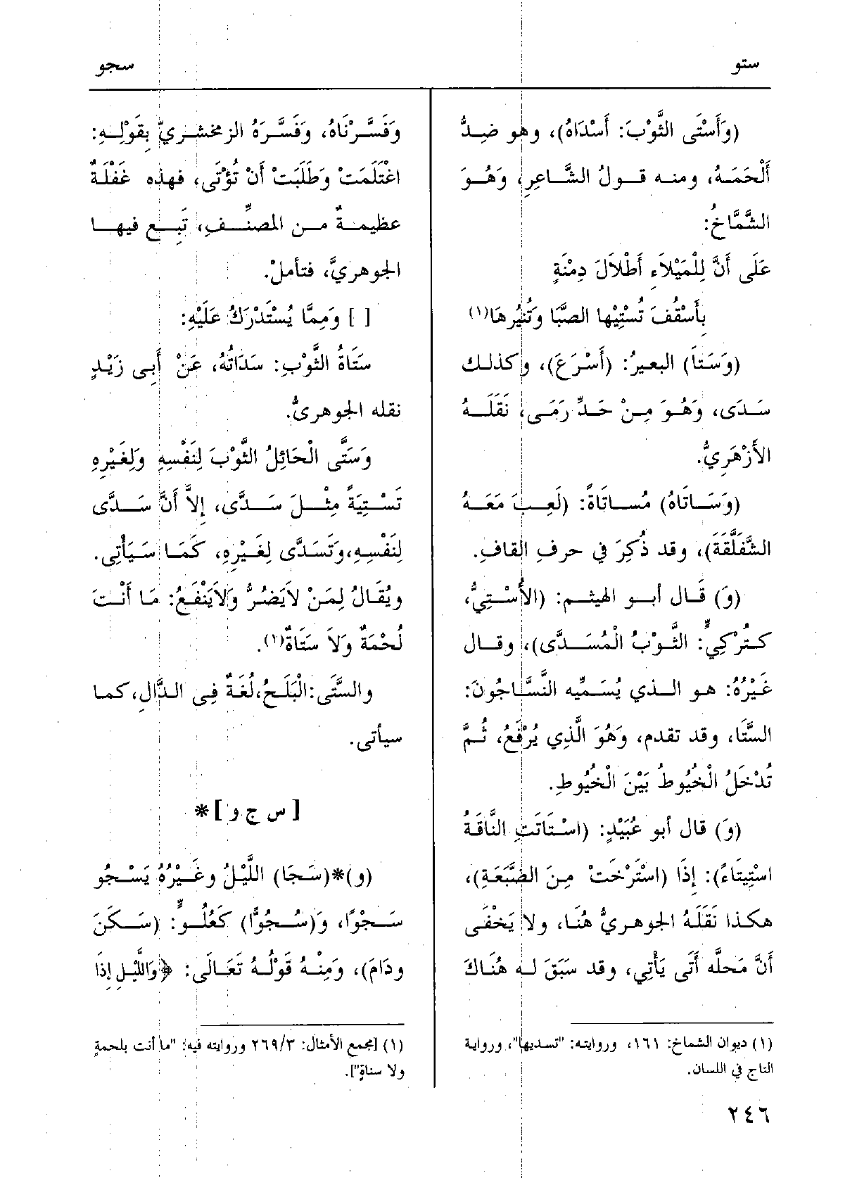 وممَّا يُستدركُ عَلَيْهِ: {سَتاةُ الثوبِ: سَداتُه، عَن أَبي زيْدٍ، نقلَهُ الجوهريُّ.