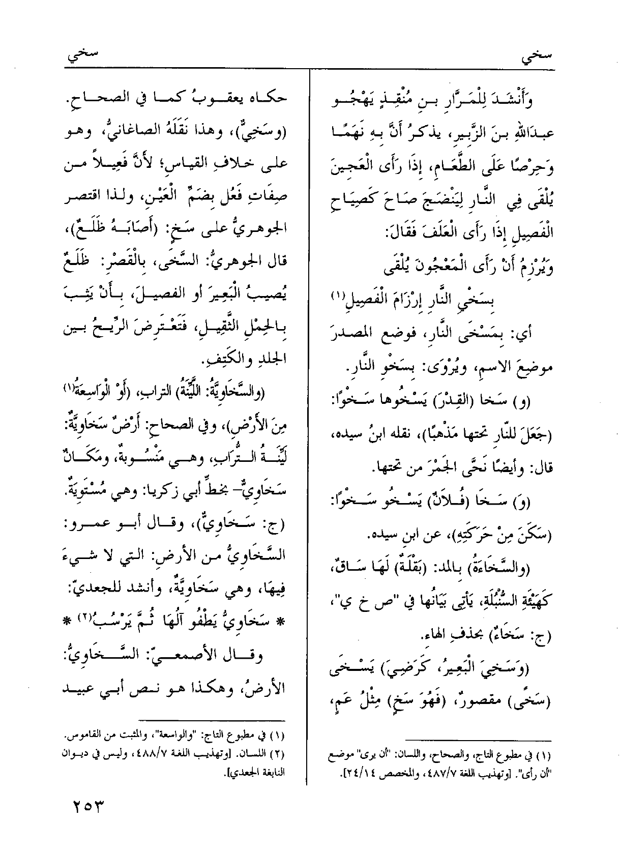 (} وسَخِيَ البَعِيرُ، كرَضِيَ) ، {يُسْخَى (} سَخًى) ، مَقْصور، (فَهُوَ {سَخٍ) ، مثْلُ عَمٍ، حَكَاه يَعقوب كَمَا فِي الصِّحاحِ؛ (} وسَخِيٌّ) ، وَهَذَا نقلَهُ الصَّاغانيُّ وَهُوَ على خِلافِ القِياسِ، لأنَّ فَعِيلاً مِن صِفاتِ فَعُلَ بضمِّ العَيْن، وَلذَا اقْتَصَرَ الجوهريُّ على {سَخِ؛ (أَصَابَهُ ظَلَعٌ) .
