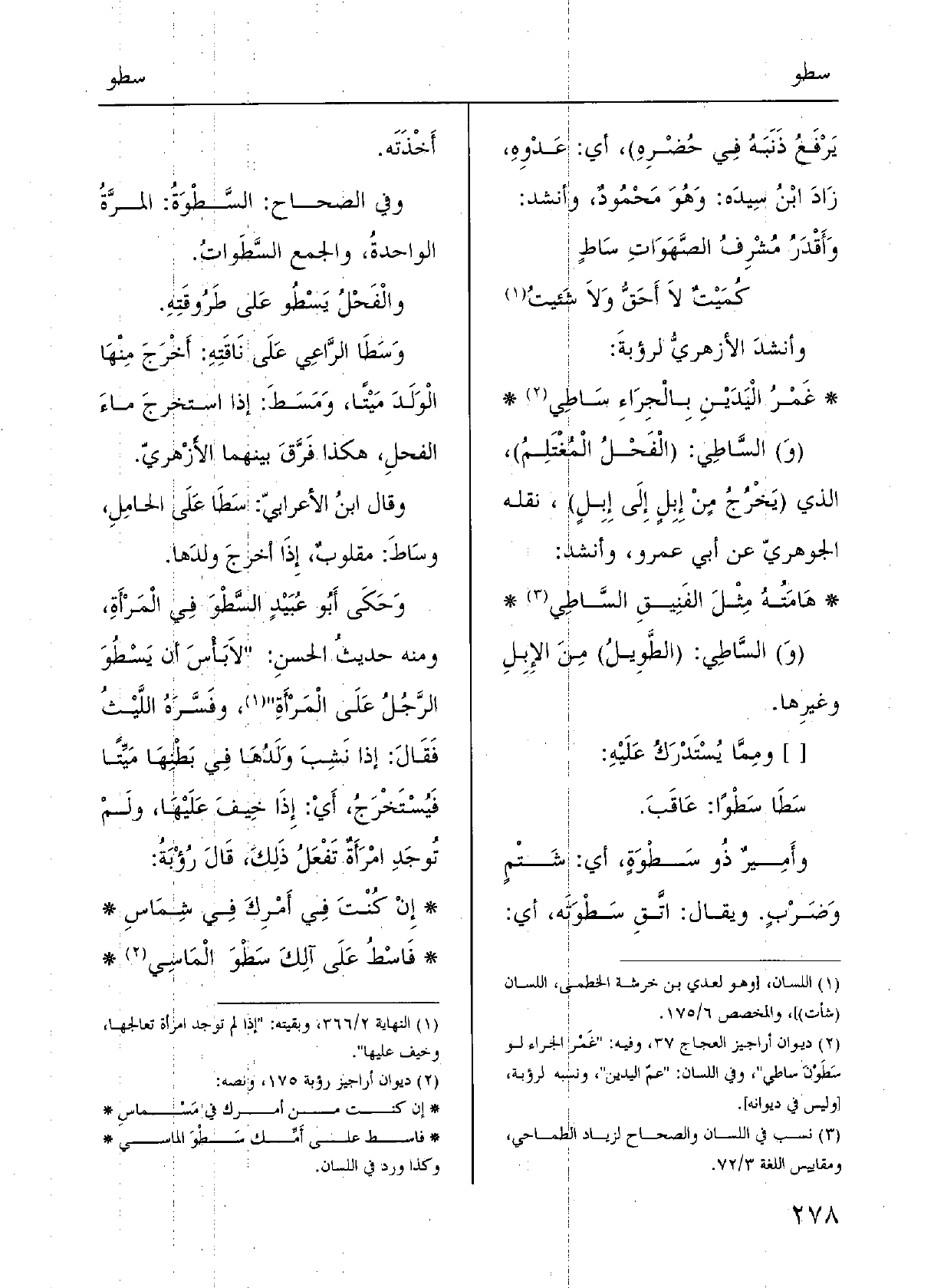 وَقَالَ ابنُ الأَعْرابيِّ: سَطَا على الحامِلِ وسَاطَ، مَقْلوبٌ، إِذا أَخْرَجَ وَلَدَها.