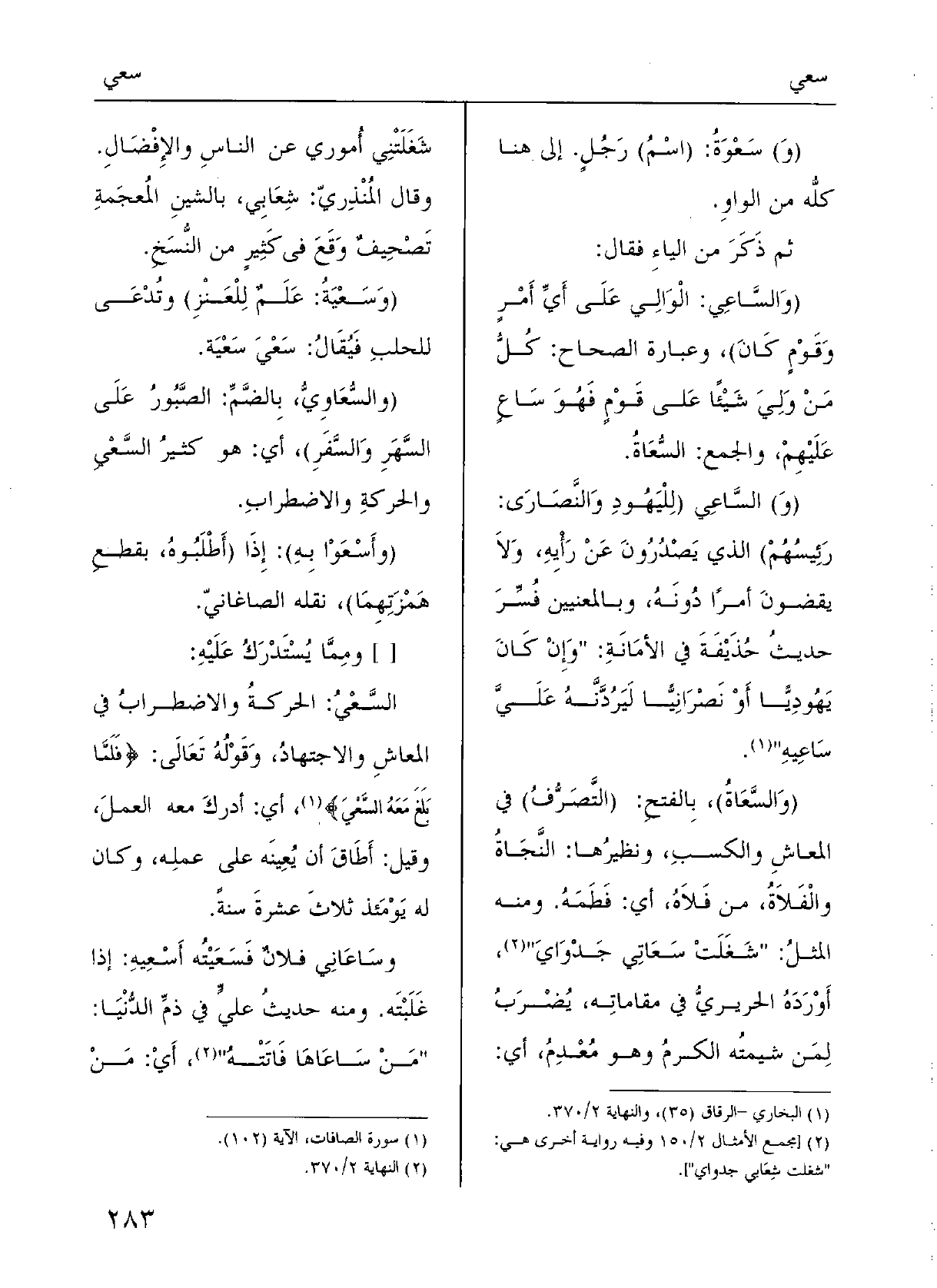} السَّعْيُ الحرَكَةُ والاضْطِرابُ فِي المَعاشِ والاجْتِهادِ.