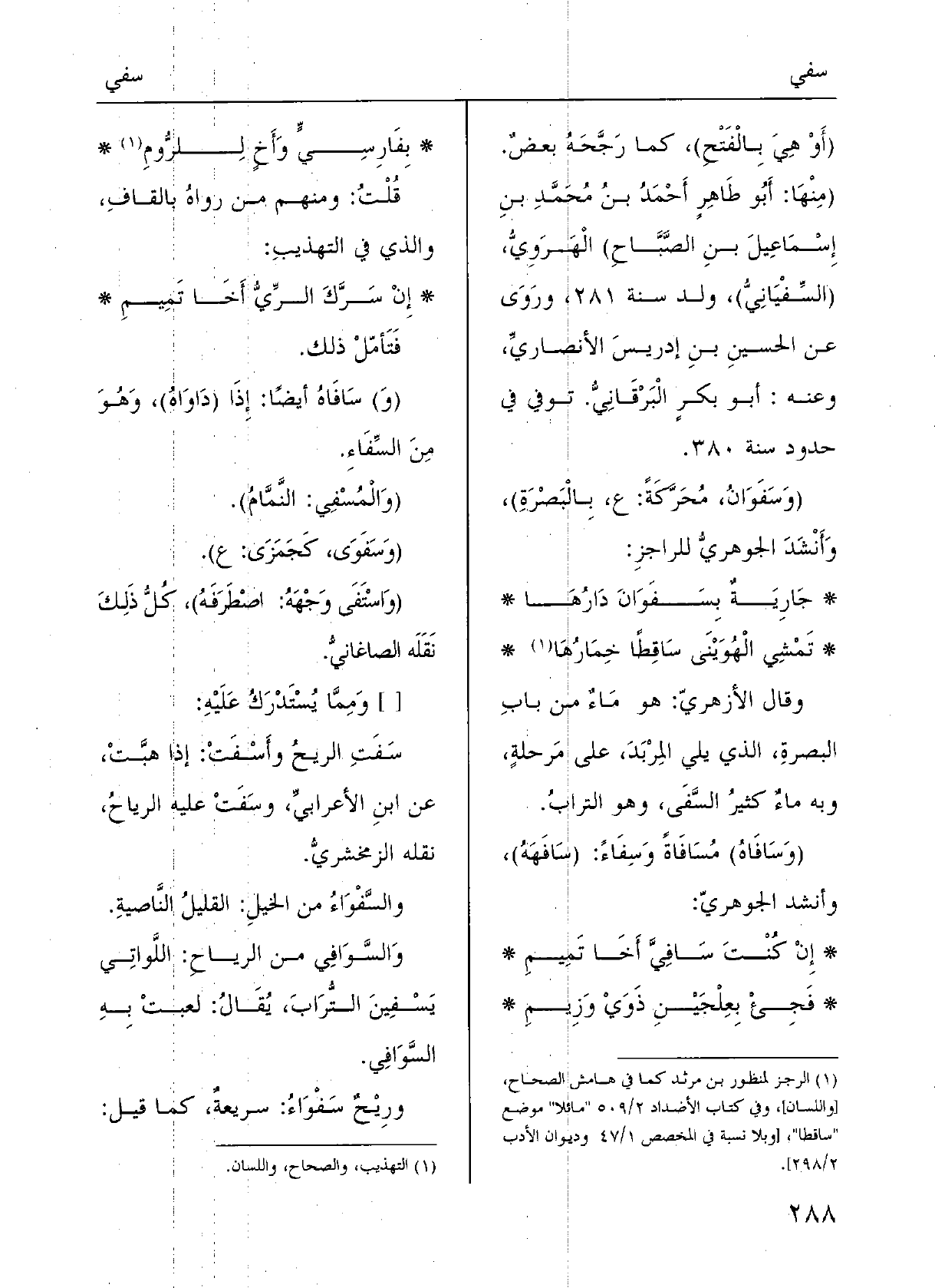 (أَو هِيَ بالفتْحِ) كَمَا رَجَّحه بعضٌ، (مِنْهَا أَبو طاهِرٍ أَحمدُ بن مُحَمَّد بنِ إسْماعيلَ بنِ الصّبَّاح) الهَرِويُّ ( {السَّفيانيُّ) وُلِدَ سَنَة 381 ورَوَى عَن الحُسَيْن بن إِدْرِيس الأَنْصارِي؛ وَعنهُ أَبو بكْرٍ البرقانيُّ، تُوفي فِي حدودِ سَنَة 380.