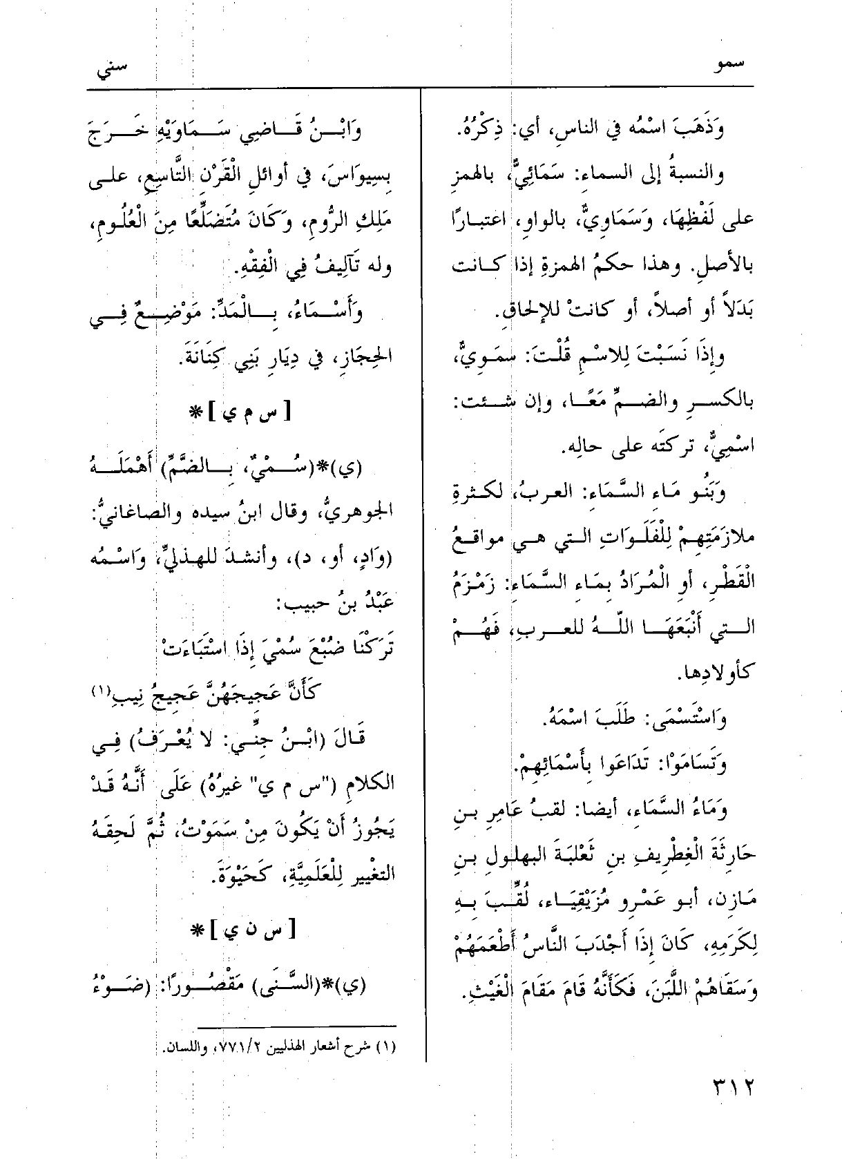 وَإِذا نَسَبْت إِلَى الاسْم قلْت {سُمَوِيٌّ بالكسْر وَالضَّم مَعًا، وَإِن شِئْت} اسْمِيٌّ، تَرَكْته على حالِهِ.