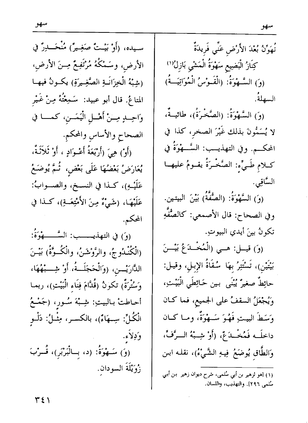 وَفِي التَّهذِيب: السَّهْوَةُ فِي كَلامِ طيِّىءٍ: الصَّخْرَةُ يقومُ عَلَيْهَا السَّاقي.