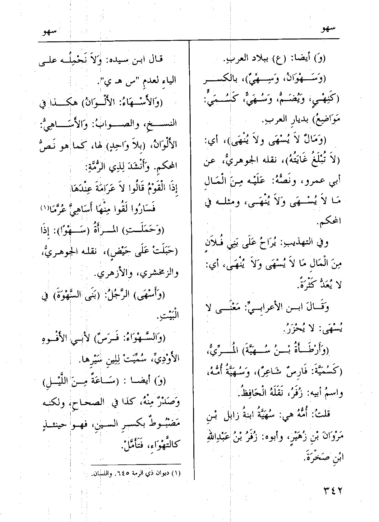 قالَ ابنُ سِيدَه: وَلَا نحْملُه على الياءِ لعَدَمِ سهي.