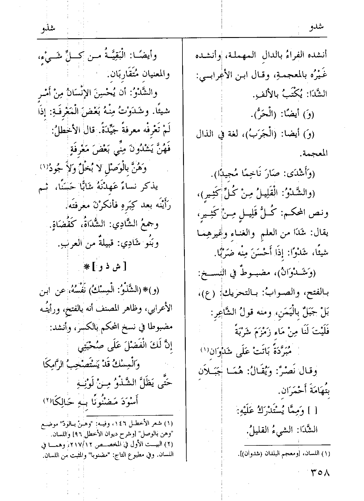 {وشَدَوْتُ مِنْهُ بَعْضَ المَعْرفةِ: إِذا لم تَعْرِفْه مَعْرِفةً جيِّدةً؛ قالَ الأخْطل: