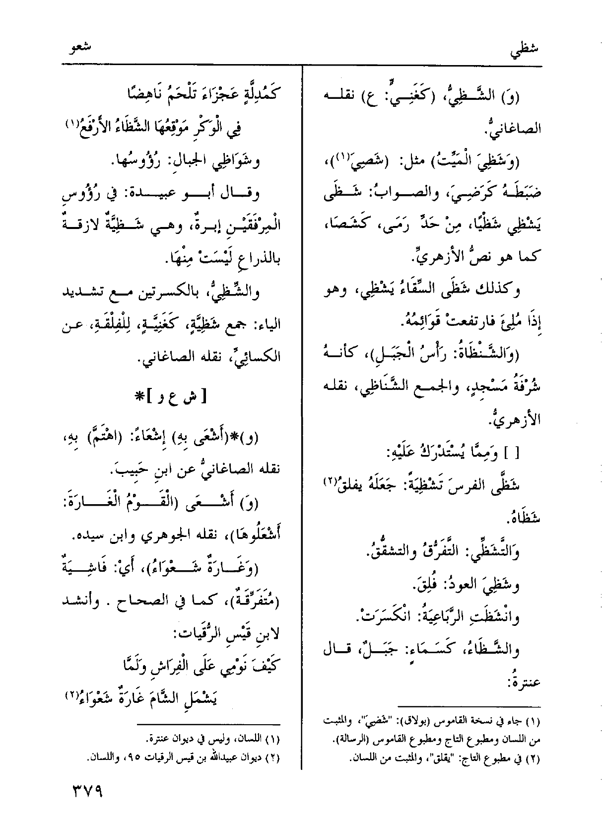 } والشَّظاءُ، كسَماءٍ: جَبَلٌ؛ قالَ عنترَةُ: