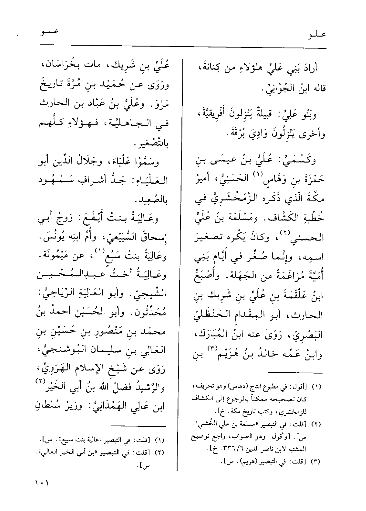 ومَسْلمةُ بنُ عُليَ الحسْني وكانَ يَكْرهُ تَصْغيرَ اسْمه وإنَّما صُغِّرَ فِي أَيامِ بَني أُمَيَّة مُراغَمَة مِن الجَهَلَةِ.