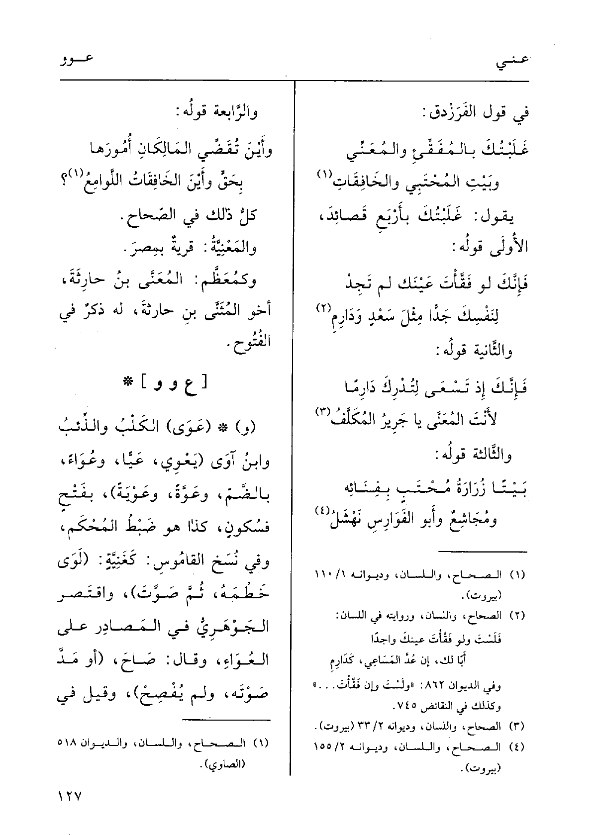 بحَقَ وأيْنَ الخافِقاتُ اللَّوامعُ؟ كلُّ ذلكَ فِي الصِّحاح.