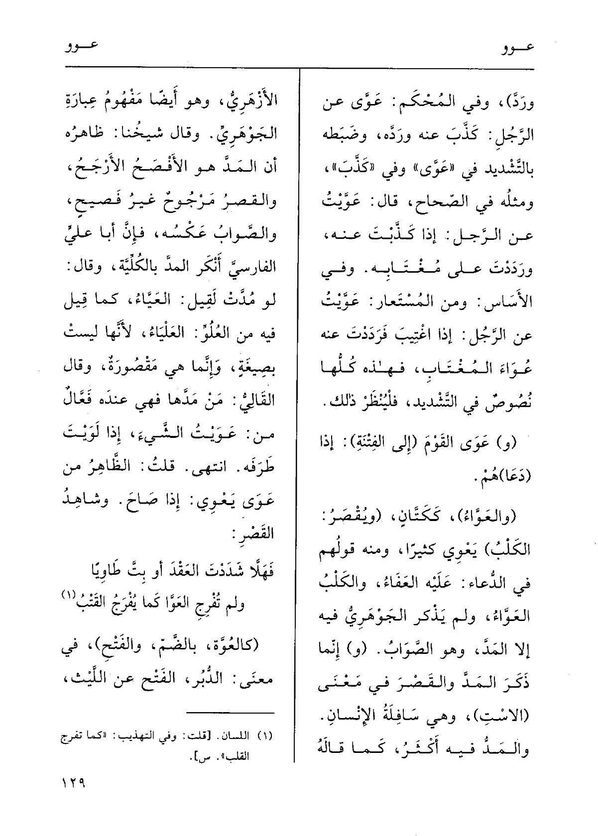 قُلْت: الظَّاهِرُ مِن عَوَى يَعْوِي إِذا صاحَ؛ وشاهِدُ القَصْر: