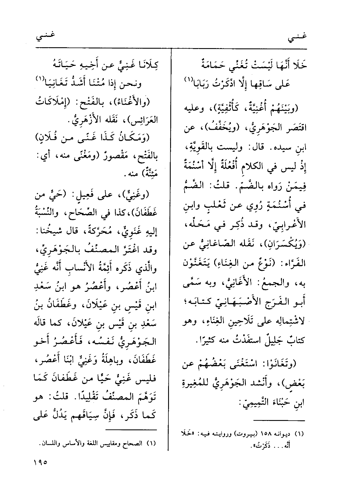 (} وتَغانَوْا: {اسْتَغْنَى بعضُهم عَن بعضٍ) ؛) وأَنْشَدَ الجَوْهَرِي للمُغِيرَة بنِ حَبْناء التَمِيمِي: