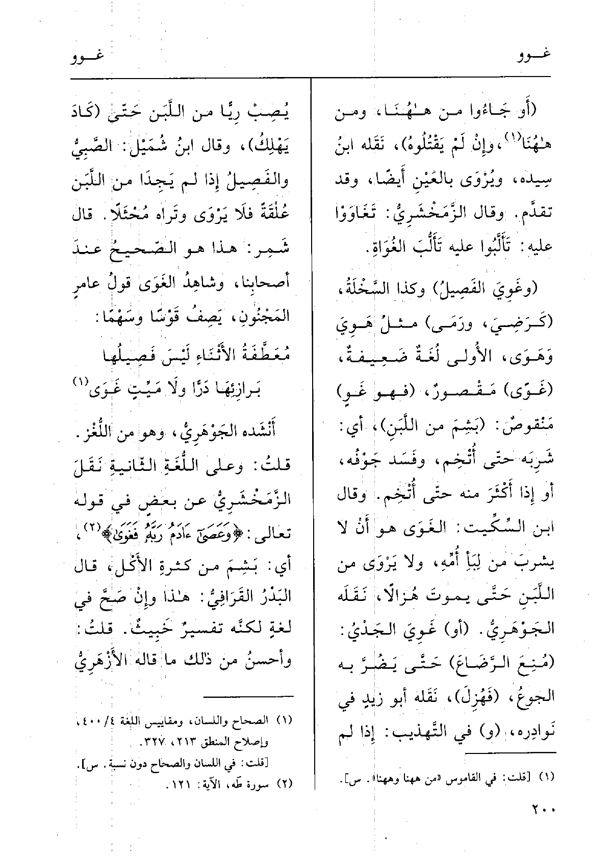 قُلْت: وأَحْسَنُ مِن ذلكَ مَا قالَهُ الأزْهرِي