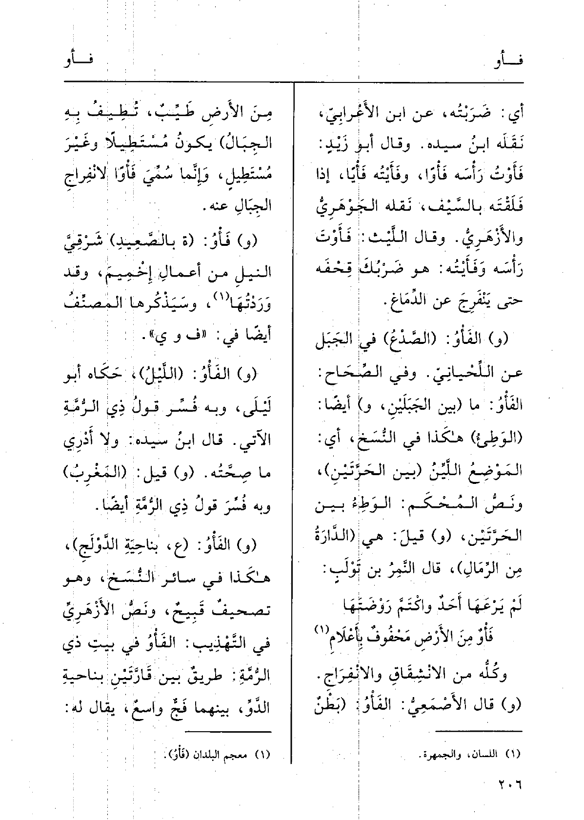 {فَأْوٌ مِن الأرْضِ مَحْفُوفٌ بأَعْلام ِوكُلُّه مِنَ الانْشِقاقِ والانْفِراجِ.