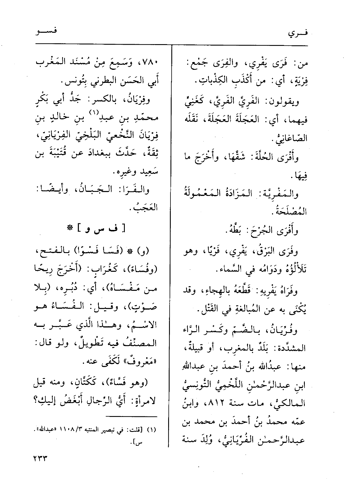 } وفُرِّيان: بالضمِ وكسْرِ الراءِ المُشدَّدةِ: بَلَدٌ بالمَغْربِ.