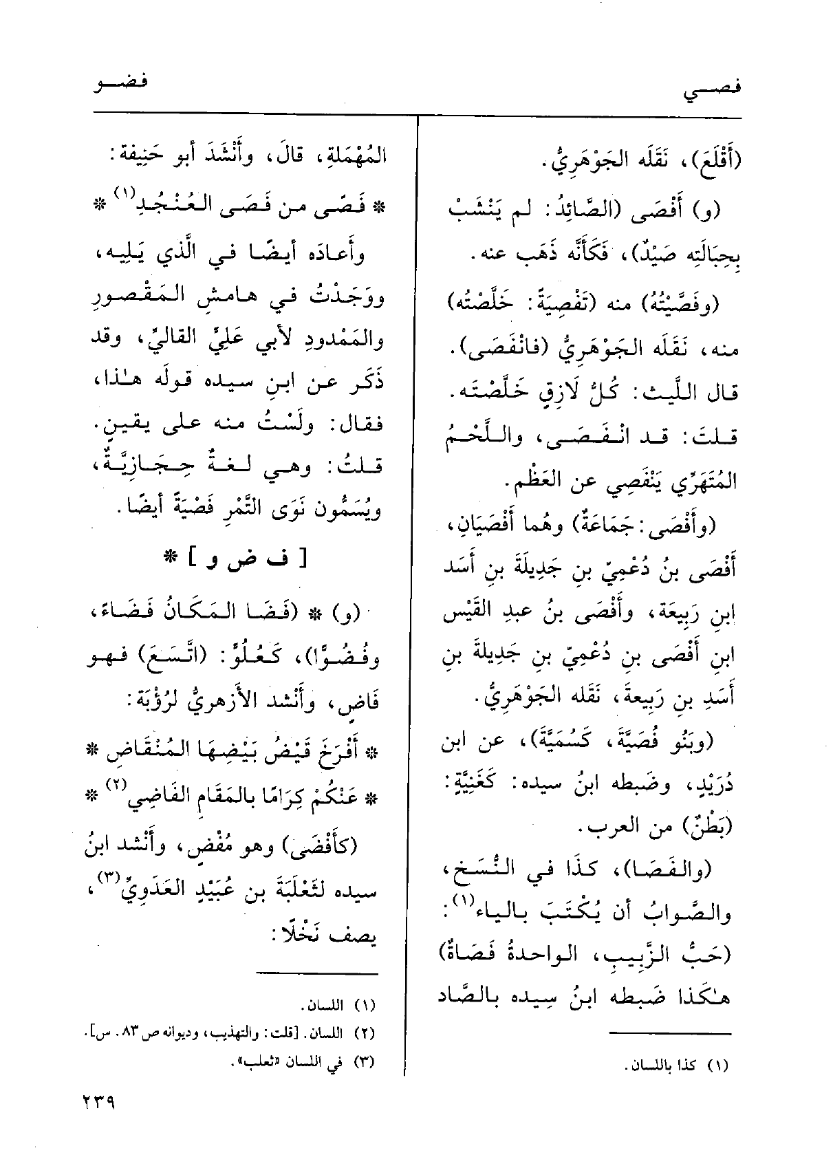 قُلْت: وَهِي لُغَةٌ حِجازِيَّةٌ. ويسمّون نَوَى التّمْرِ {فَصية أَيْضاً.
