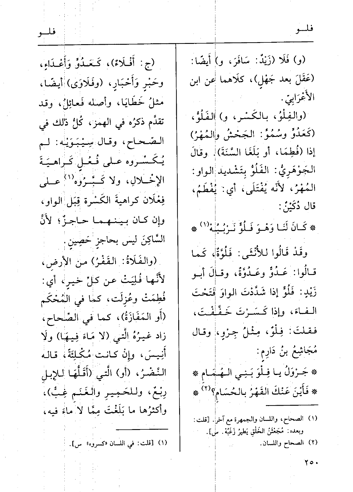 وقالَ أَبو زَيْدٍ: فَلُوٌّ إِذا شَدَدْتَ الواوَ فَتَحْتَ الفاءَ، وَإِذا كَسَرْتَ خَفَّفْتَ فقُلْت فِلْو مثْلُ جِرْوٍ؛ وقالَ مجاشِعُ بنُ دَارِم: