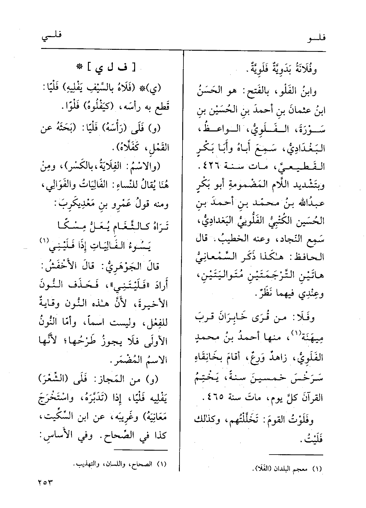 {وفلا: مِن قُرَى خَابرَان قُرْبَ مِيهَنَة، مِنْهَا: أَحمدُ بنُ محمدٍ الفلويُّ زاهِدٌ أَقامَ بخانقاه سرخس خَمْسِين سَنَة يَخْتمُ القُرْآن كلَّ يومٍ ماتَ سَنَة 465.