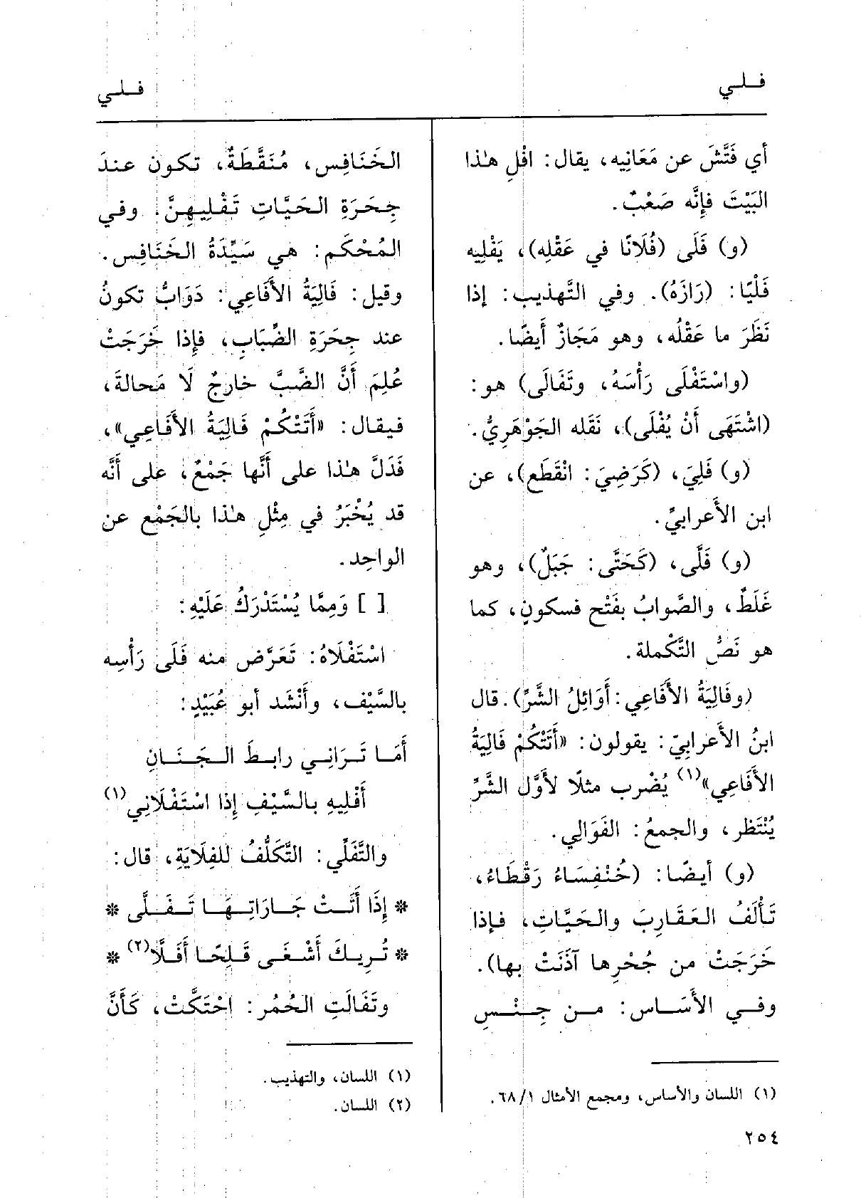 ( {وفالِيَةُ الأَفاعِي: أَوائِلُ الشَّرِّ) .) قالَ ابنُ الأعْرابي: يقولونَ: أَتَتْكُم} فالِيَةُ الأفاعِي؛ يُضْرَبُ مَثَلاً لأوَّلِ الشرِّ يُنْتَظَر؛ والجَمْعُ {الفَوَالِي.