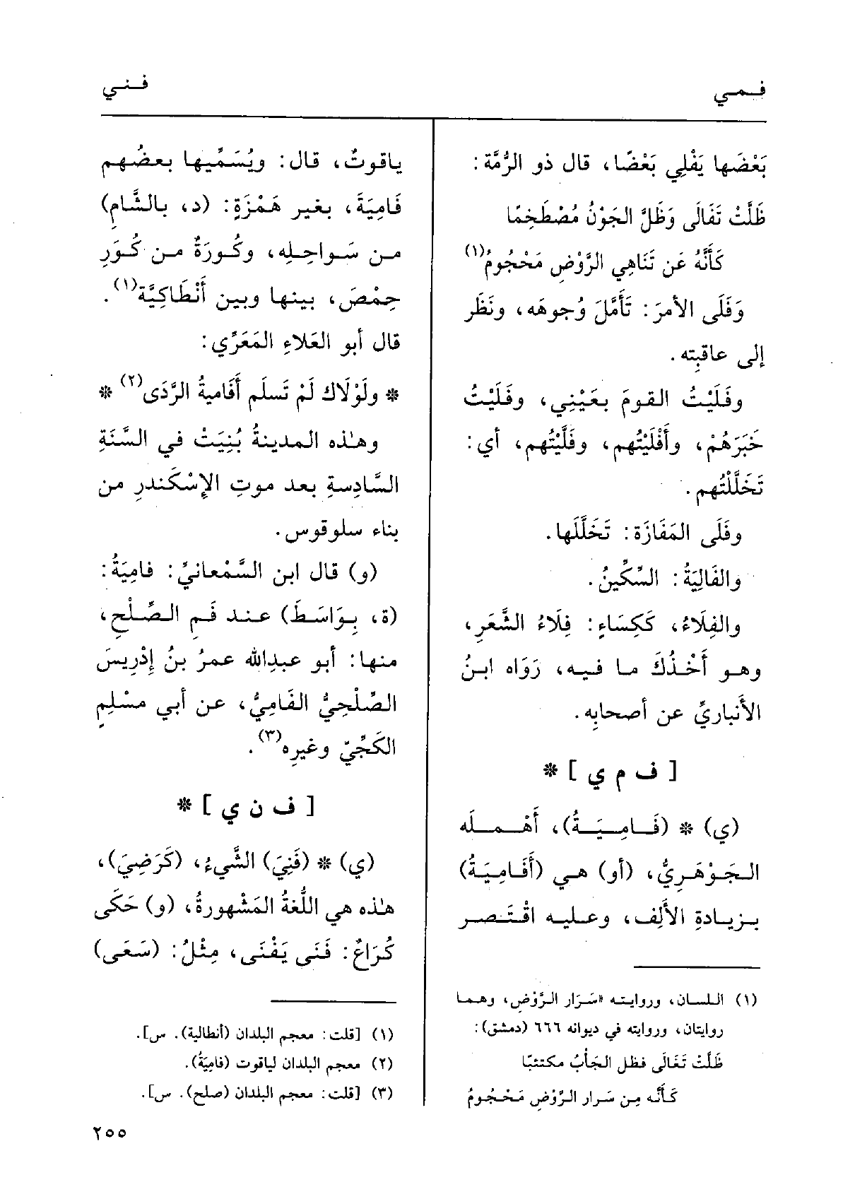 : (ي ( {فامِيَةُ) :) أَهملهُ الجَوْهرِي.