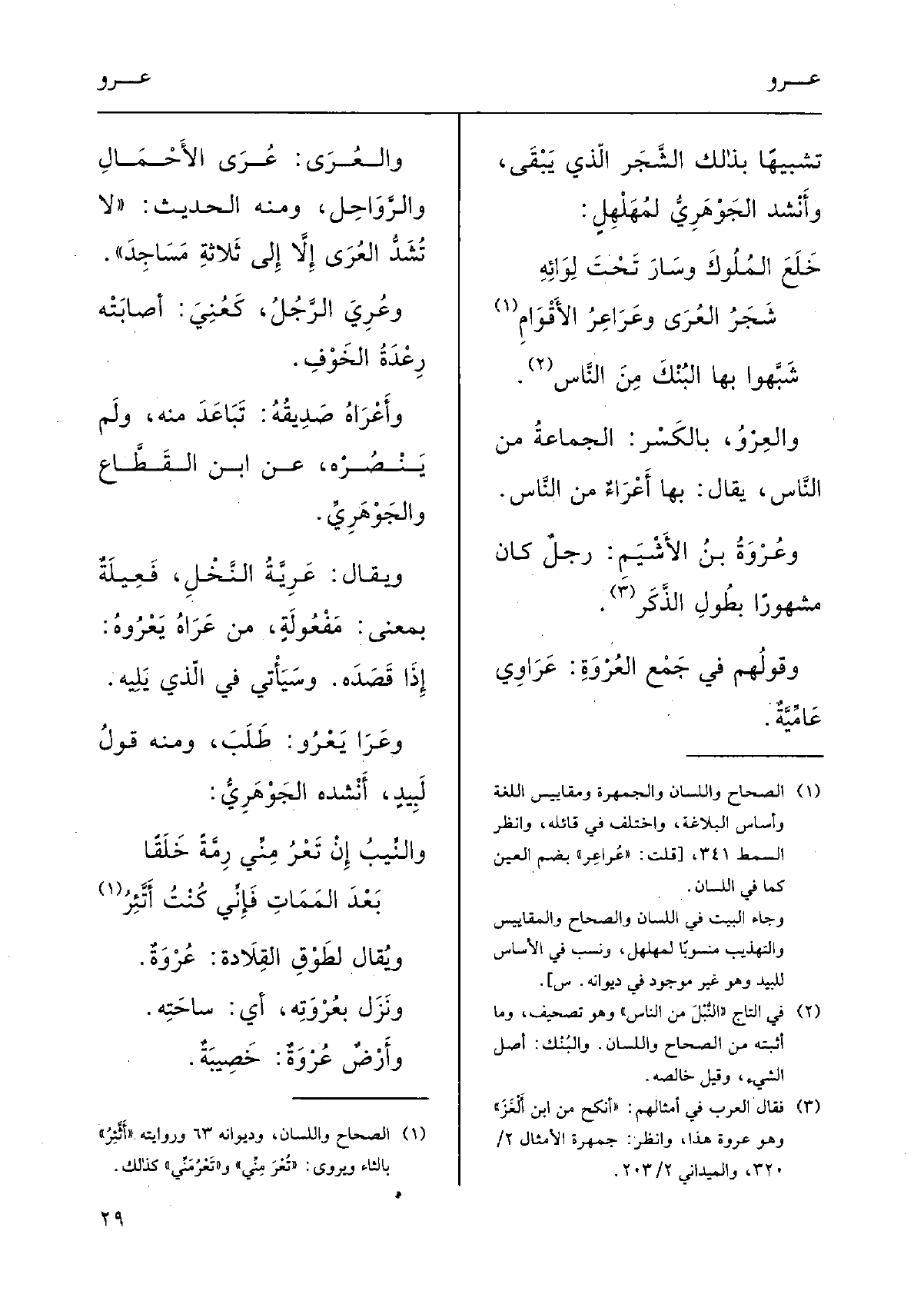 {وعَرا} يَعْرُو: طَلَبَ؛ وَمِنْه قولُ لَبيدٍ أَنْشَدَه الْجَوْهَرِي.