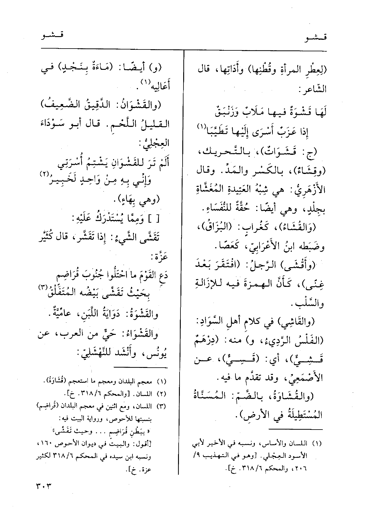 ( {والقَشْوانُ: الدَّقيقُ الضَّعيفُ) القليلُ الَّلحْمِ؛ قالَ أَبو سَوْداء العِجْلي: