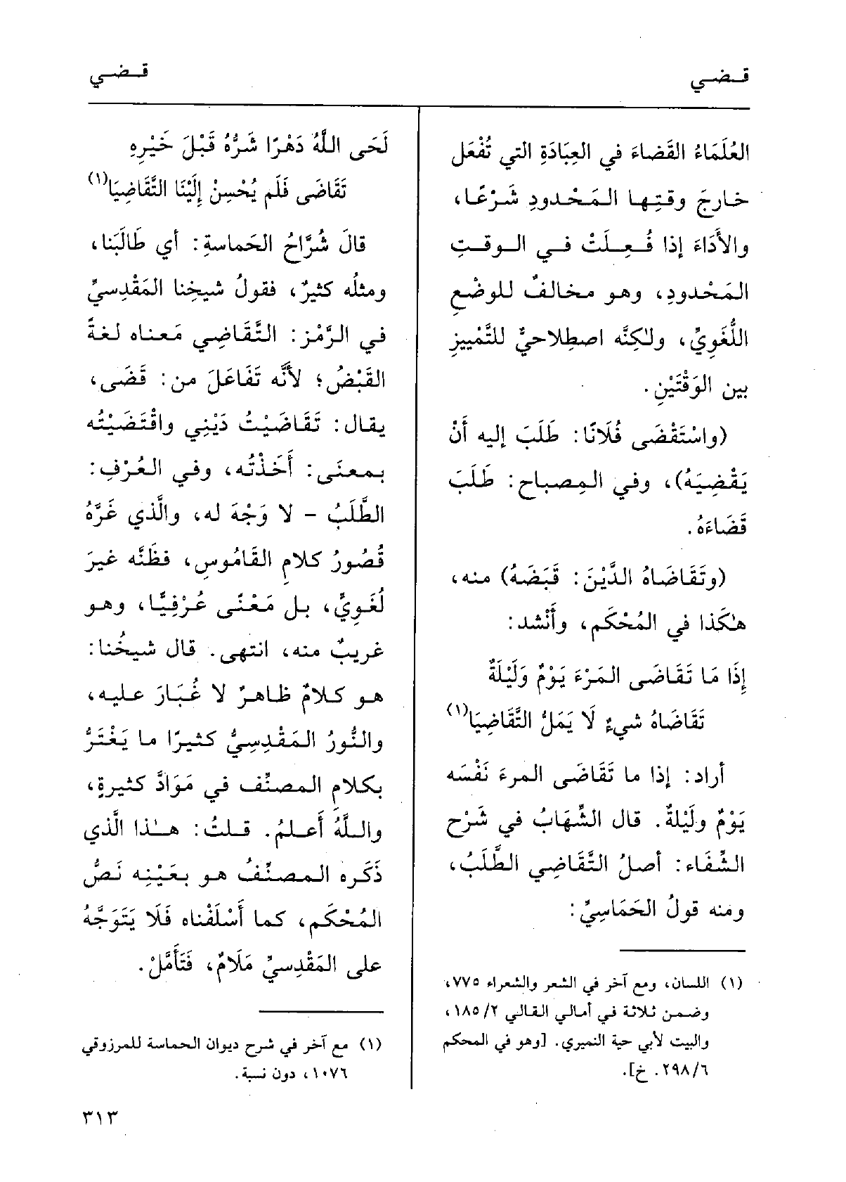 قالَ الشَّهاب فِي شرْحِ الشِّفَاء: أَصْلُ التَّقاضِي الطَّلَبُ؛ وَمِنْه قولُ الحماسي: