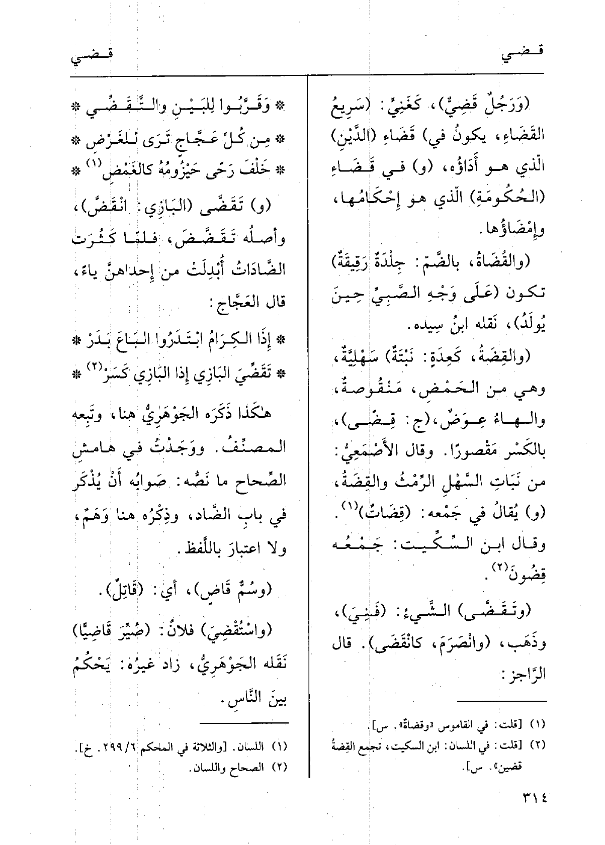 ووَجدْتُ فِي هامِشِ الصِّحاح مَا نَصّه: صَوابُه أَنْ يُذْكَر فِي بابِ الضَّاد، وذِكْرُه هُنَا وَهْمٌ وَلَا اعْتِبارَ باللَّفْظِ.