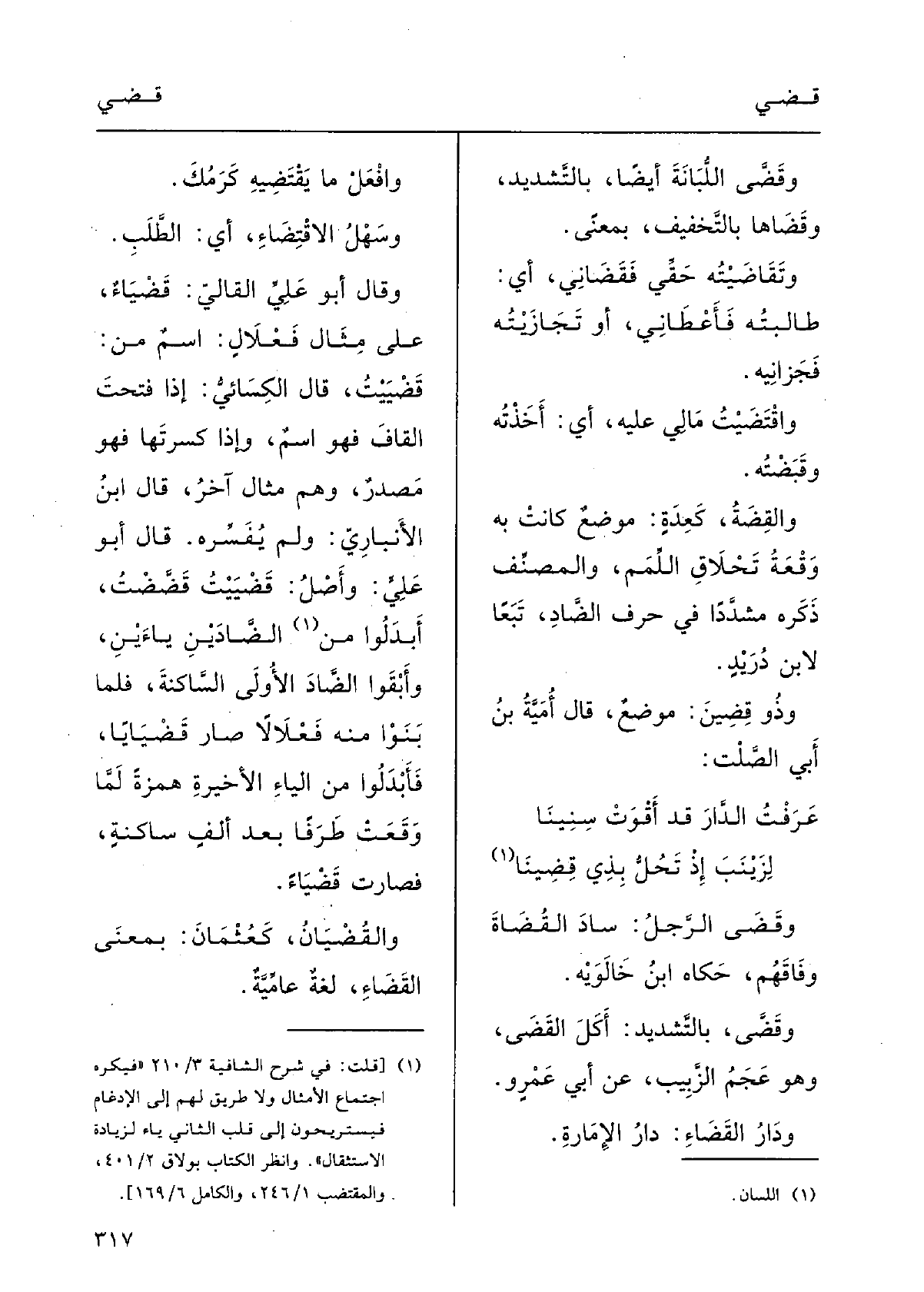 ! والقُضْيانُ، كعُثْمان: بمعْنَى القَضاءِ لُغَةٌ عاميَّةٌ.