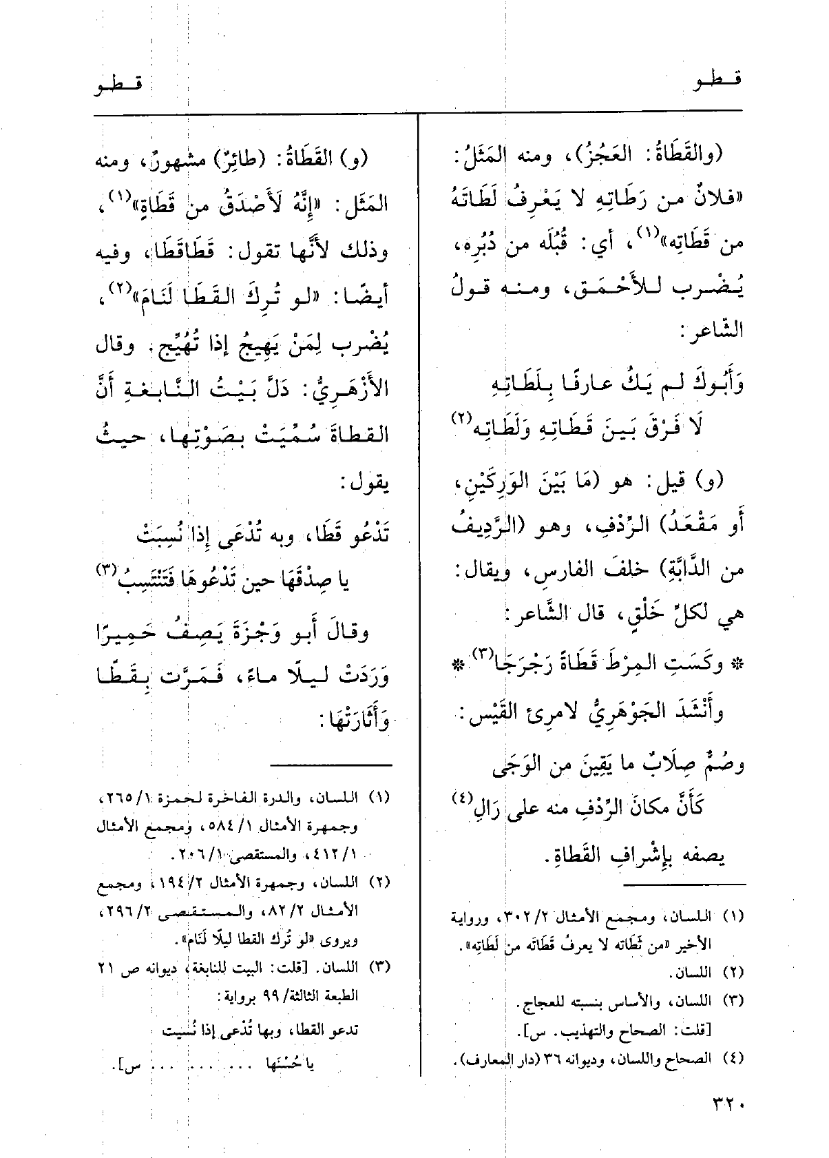 وقالَ الأَزْهرِي: دلَّ بيتُ النابغَةِ أنَّ {القَطاةَ سُمِّيَت بصَوْتِها حَيْثُ يقولُ: