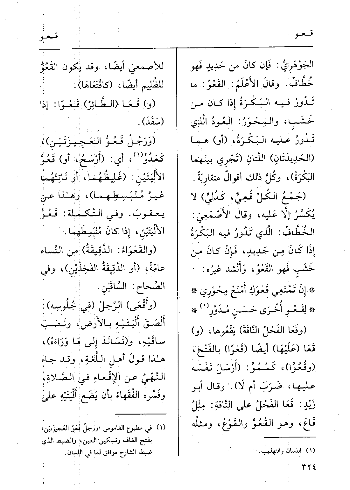 وقالَ الأعْلَمُ: {القَعْوُ مَا تَدُورُ فِيهِ البَكَرَةُ إِذا كانَ مِن خَشَبٍ، والمِحْورُ: العُودُ الَّذِي تَدُورُ عَلَيْهِ البَكَرَةُ.