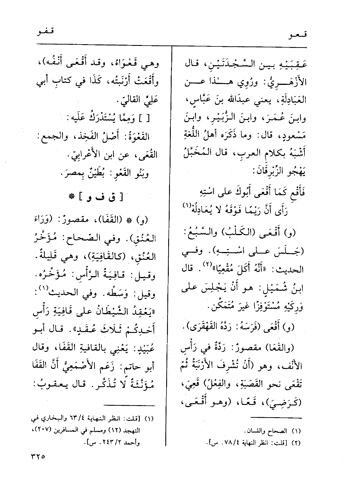 : (و (} القَفَا) ، مَقْصُورٌ: (وَراءَ العُنُقِ) .