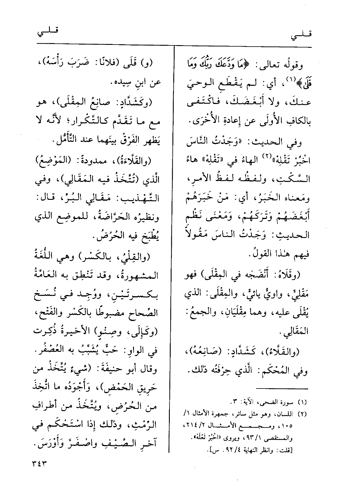 ( {وقَلاهُ: أَنْضَجَهُ فِي} المِقْلَى) ، فَهُوَ {مَقْلِيٌّ؛ واوِيٌّ يائِيٌّ.