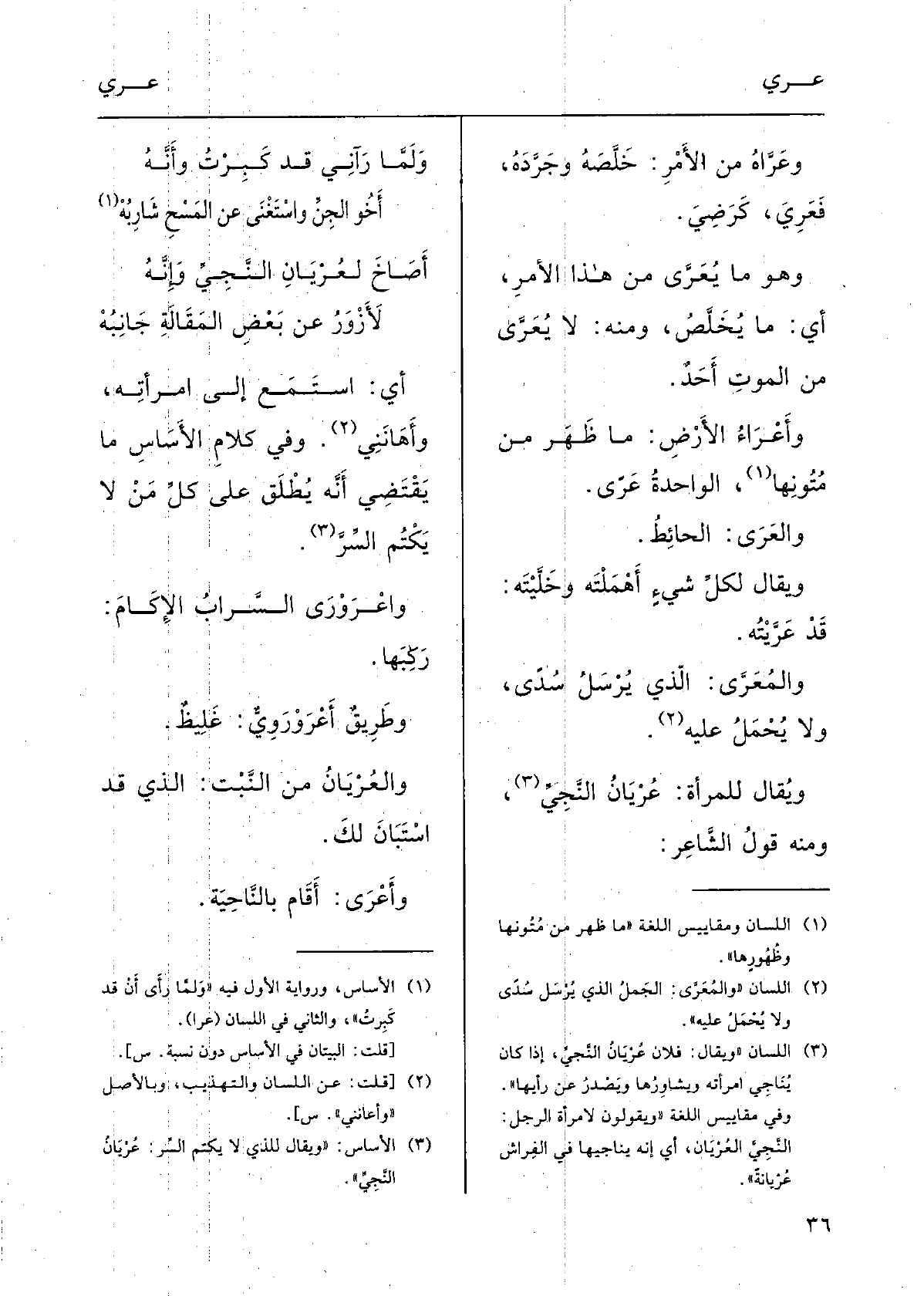 } والعُرْيانُ من النَّبْتِ: الَّذِي قد اسْتَبانَ لَكَ.