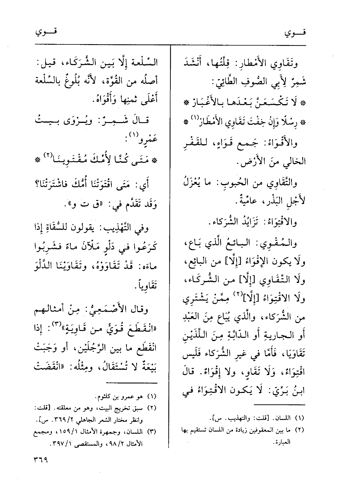 قالَ ابنُ برِّي: لَا يكونُ} الاقْتِواءُ فِي السِّلْعَةِ إلاَّ بينَ الشُّركاءِ، قيلَ: أَصْلُه مِن {القُوَّة لأنَّه بُلوغٌ بالسِّلْعَةِ أَعْلَى ثَمَنِها} وأَقْواهُ.