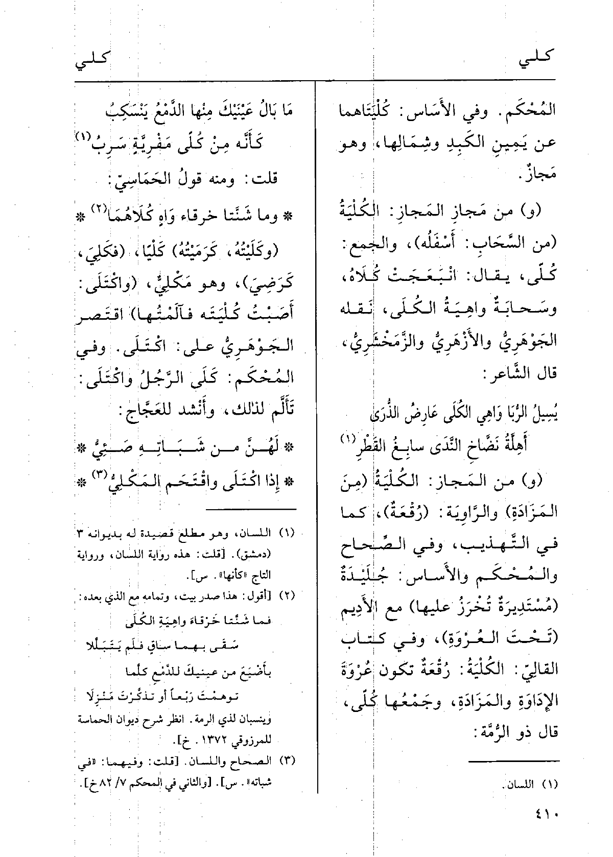 وماشنتا خرقاء واه} كِلَاهُمَا ( {وكَلَيْتُهُ، كرَمَيْتُهُ) ،} كَلْياً ( {فَكَلِيَ، كرَضِيَ) ، وَهُوَ} مَكْلِيٌّ، ( {واكْتَلَى: أَصَبْتُ} كُلْيَتَه فآلَمْتُها) ؛) اقْتَصَر الجَوْهرِي على {اكْتَلَى.