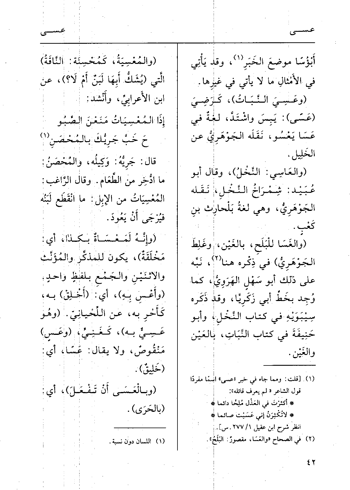 (والغَسا: للبَلَحِ، بالغَيْنِ. وغَلِطَ الجوهرِيُّ) فِي ذِكْرِه هُنَا، نبَّه على ذَلِك أَبو سَهْلٍ الهَرَويّ، كَمَا وُجِدَ بخطِّ أَبي زَكَرِيَّا وَقد ذكَرَه سِيْبَوَيْه فِي كتابِ النَّخْلِ، وَأَبُو حنيفَةَ فِي كتابِ النّباتِ بالعَيْن والغَيْن.