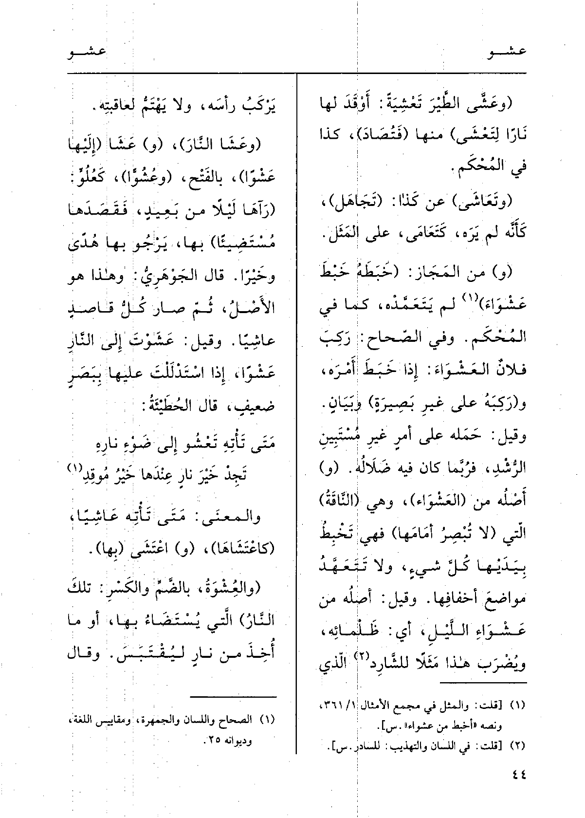 قَالَ الجوهريُّ: وَهَذَا هُوَ الأصْلُ ثمَّ صارَ كلُّ قاصِدٍ {عاشِياً.