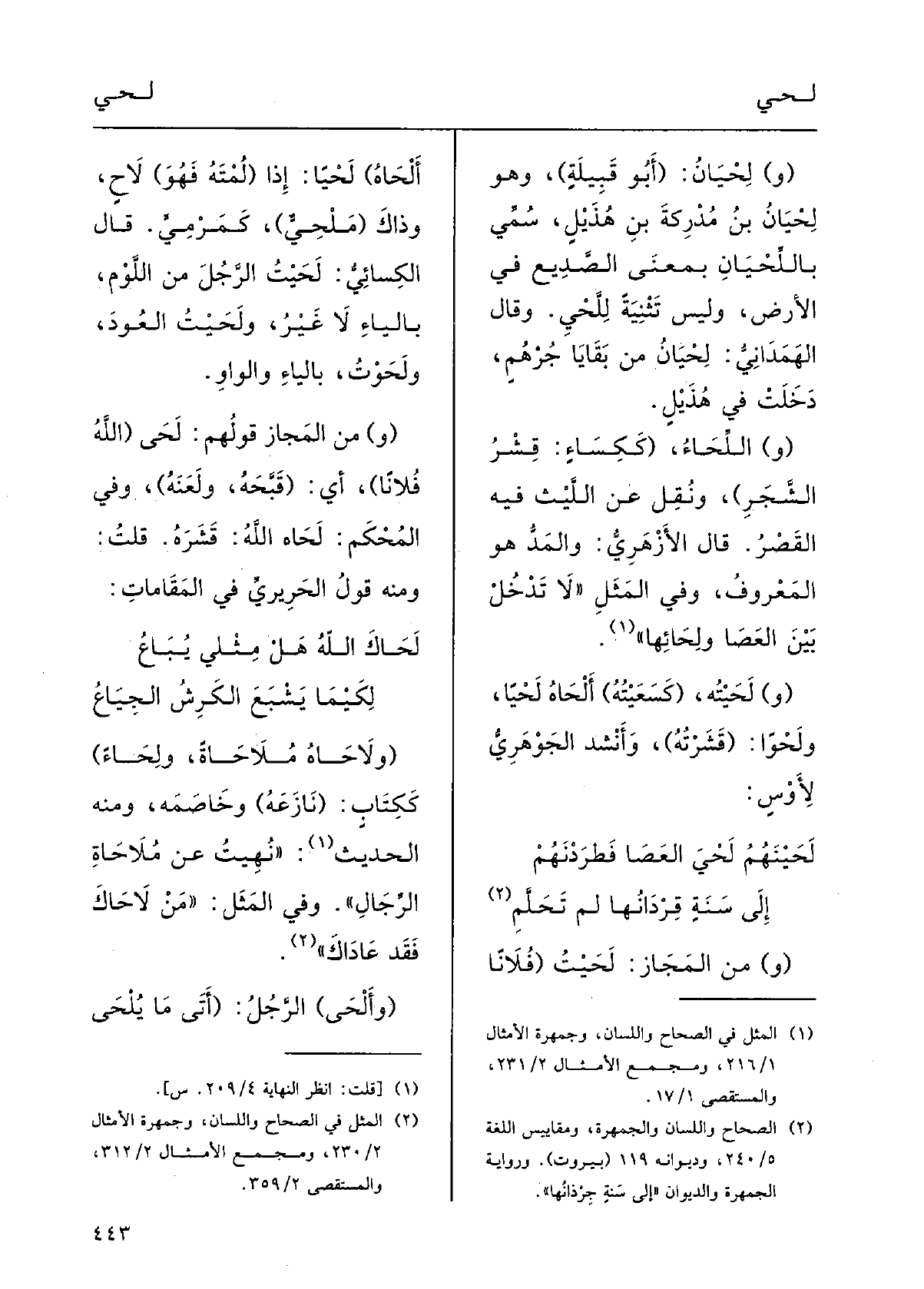 إِلَى سَنَةٍ قِرْدانُها تَحَلَّمِ (و) مِن المجازِ:} لَحَيْتُ (فُلاناٌ {أَلْحاهُ) لَحْياً: إِذا (لُمْتُه، فَهُوَ) لَاحَ، وذاكَ (} مَلْحِيٌّ) ، كمَرْمِيَ.