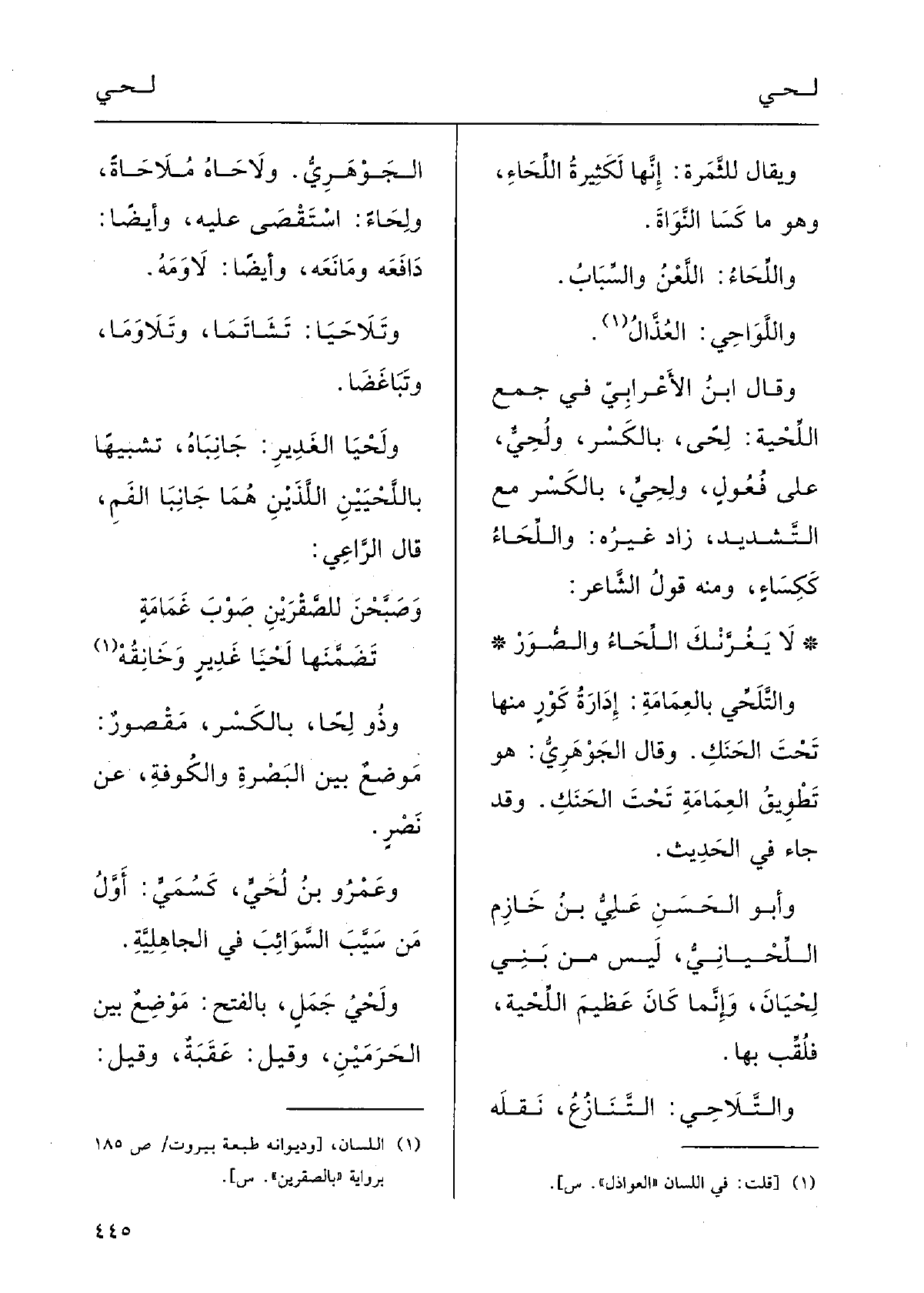 تَضَمَّنَها} لَحْيا غَدِيرٍ وخانِقُه ْوذُو {لِحا، بالكسْر مَقْصورٌ: موضِعٌ بينَ البَصْرةِ والكُوفَةِ، عَن نَصْر.