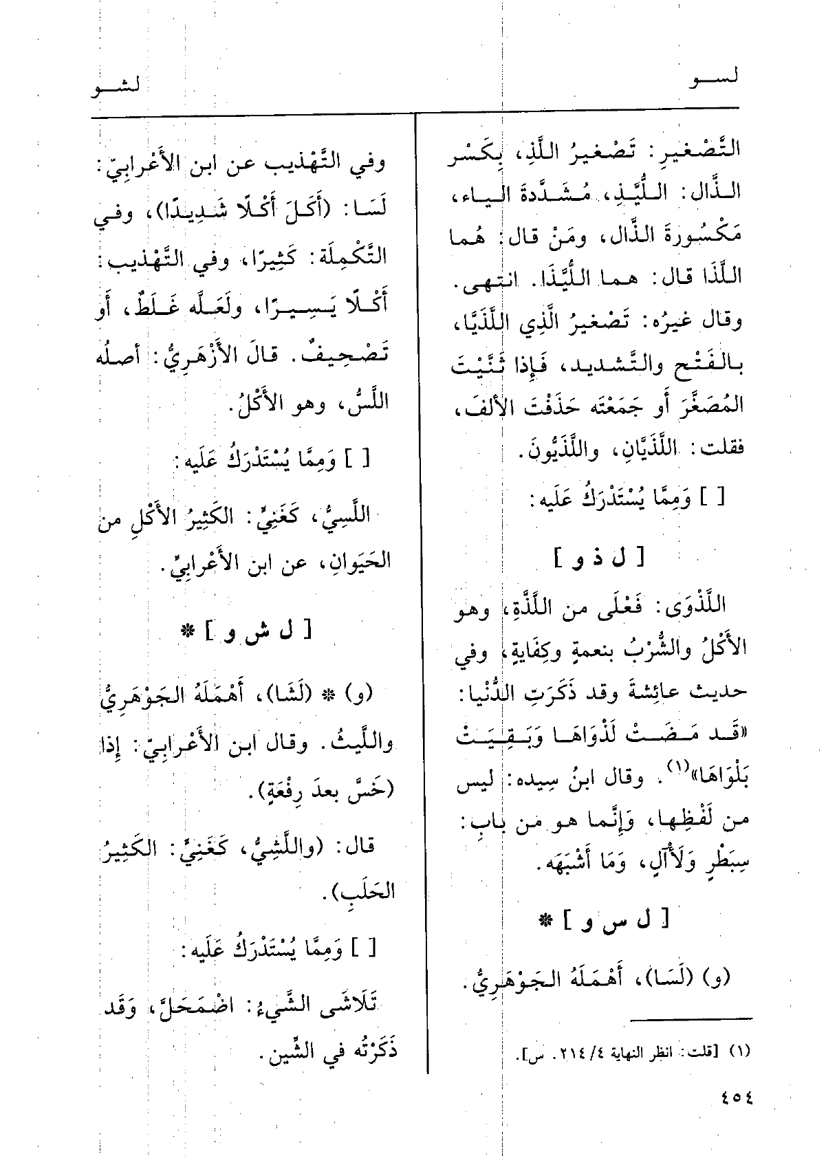 قالَ الأزْهرِي: أَصْلُه {اللَّسُّ وَهُوَ الأكْلُ.
