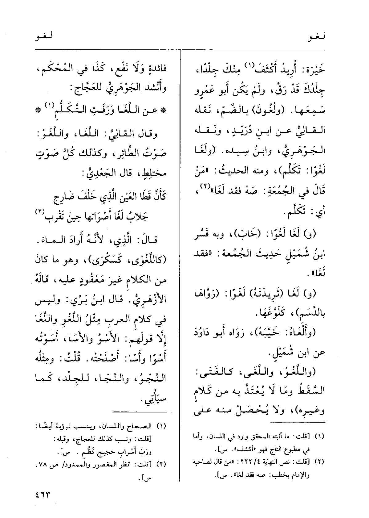 قالَ ابنُ برِّي: وليسَ فِي كَلامِ العَرَبِ مِثْل اللَّغْو! واللَّغَا إِلاَّ قَوْلهم الأَسْوُ والأسَا، أَسَوْتُه أَسْواً وأَساً أَصْلَحْته.