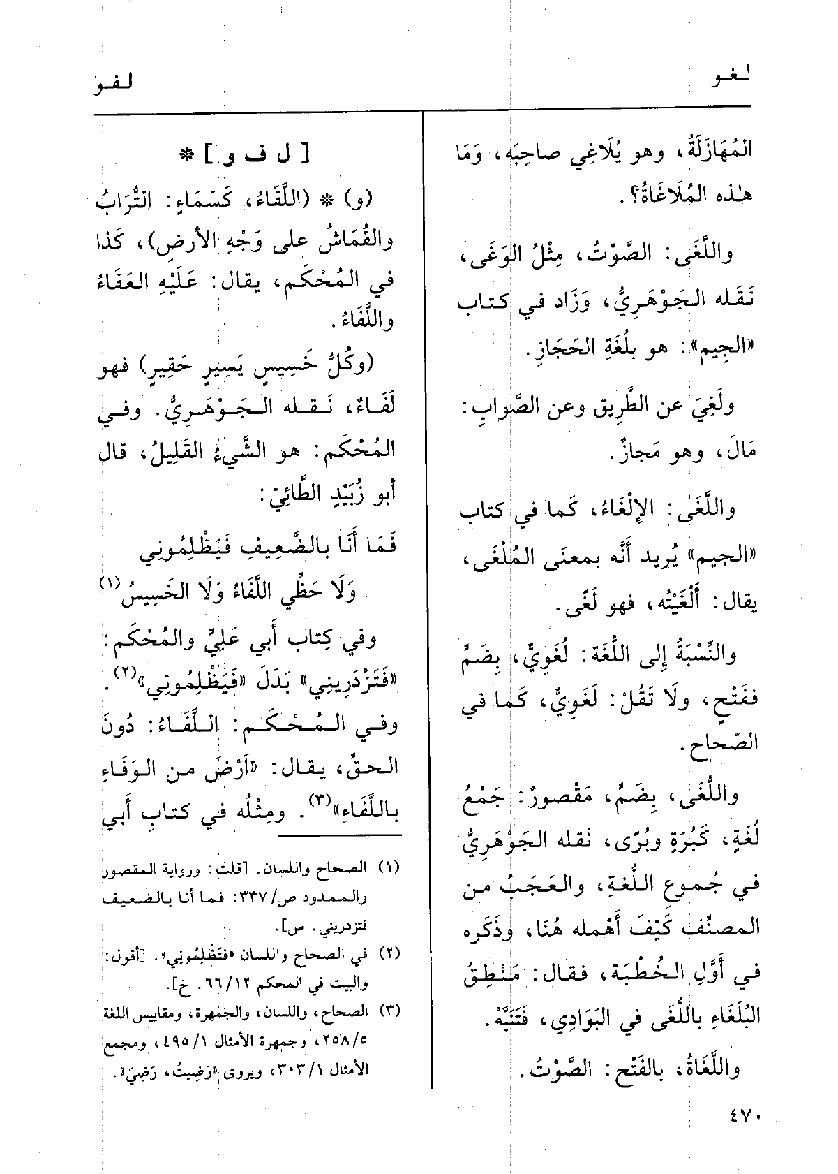 وَلَا حَظِّي اللَّفاءُ وَلَا الخَسِيسُوفي كتابِ أَبي عليَ والمُحْكم: فَتَزْدَرِيني بَدَلَ فيَظْلموني. وَفِي المُحْكم: اللَّفاءُ دُونَ الحَقِّ. يقالُ: ارْضَ من الوَفاءِ! باللَّفاءِ. ومِثْلُه فِي كتابِ أَبي