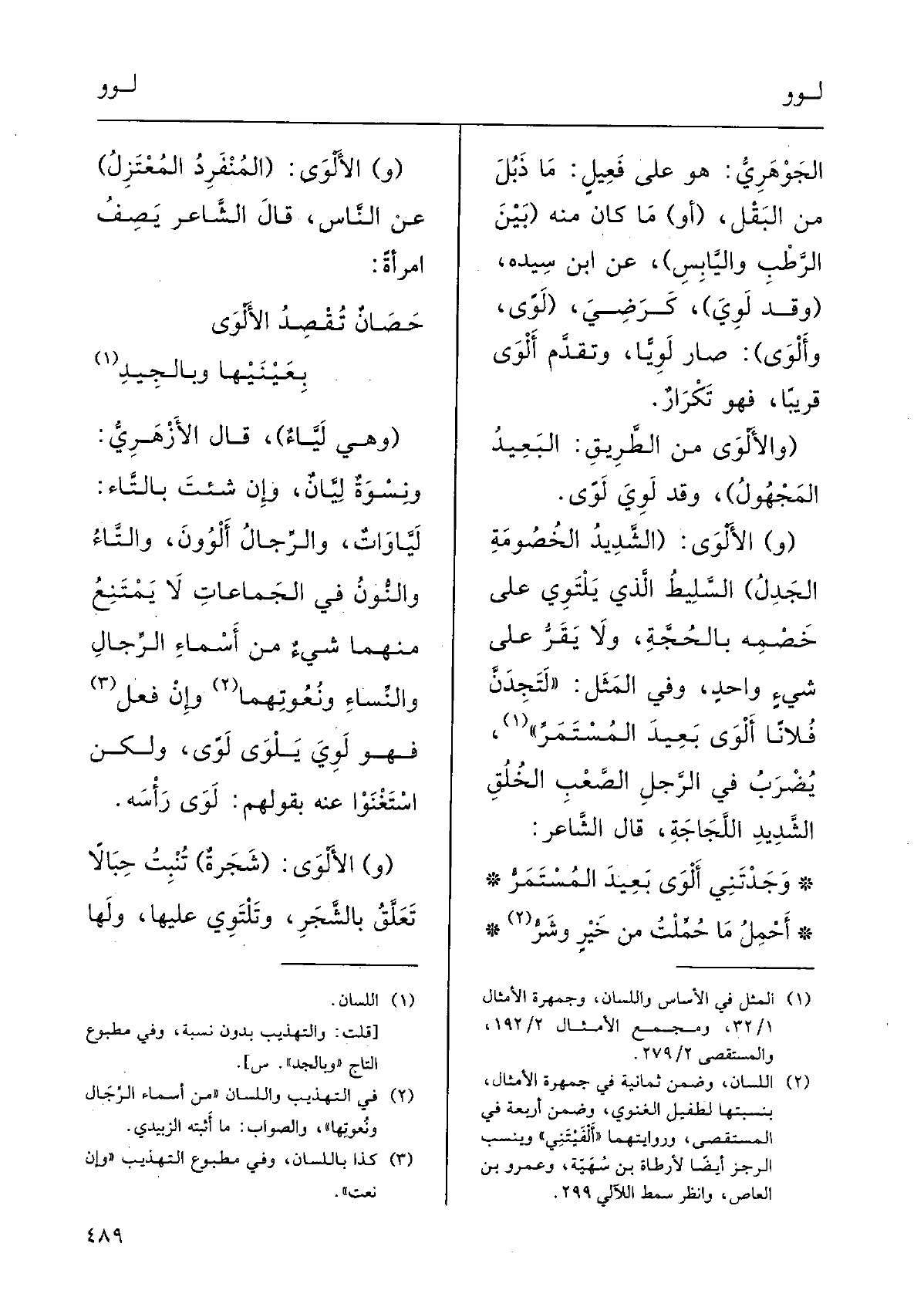 وَفِي المَثَلِ: لتَجِدَنَّ فلَانا أَلْوَى بَعِيدَ المُسْتَمَر؛ يُضْرَبُ فِي الرجُلِ الصَّعْبِ الخلقِ الشَّديدِ اللَّجاجَةِ؛ قالَ الشاعرُ: