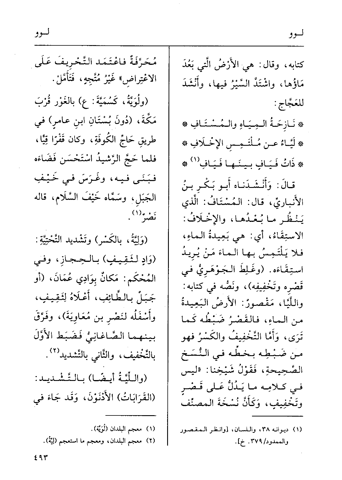 (وغَلِطَ الجَوْهرِي فِي قَصْرِه وتَخْفِيفِه) ، ونَصّه فِي كتابِه: واللَّيّا، مَقْصورٌ: الأرضُ البَعِيدَةُ من الماءِ، فالقَصْر ضَبْطُه كَمَا تَرَى، وأمَّا التَّخْفيفُ والكَسْر فَهُوَ مِن ضَبْطِه بخطِّه فِي النسخِ الصَّحِيحةِ.