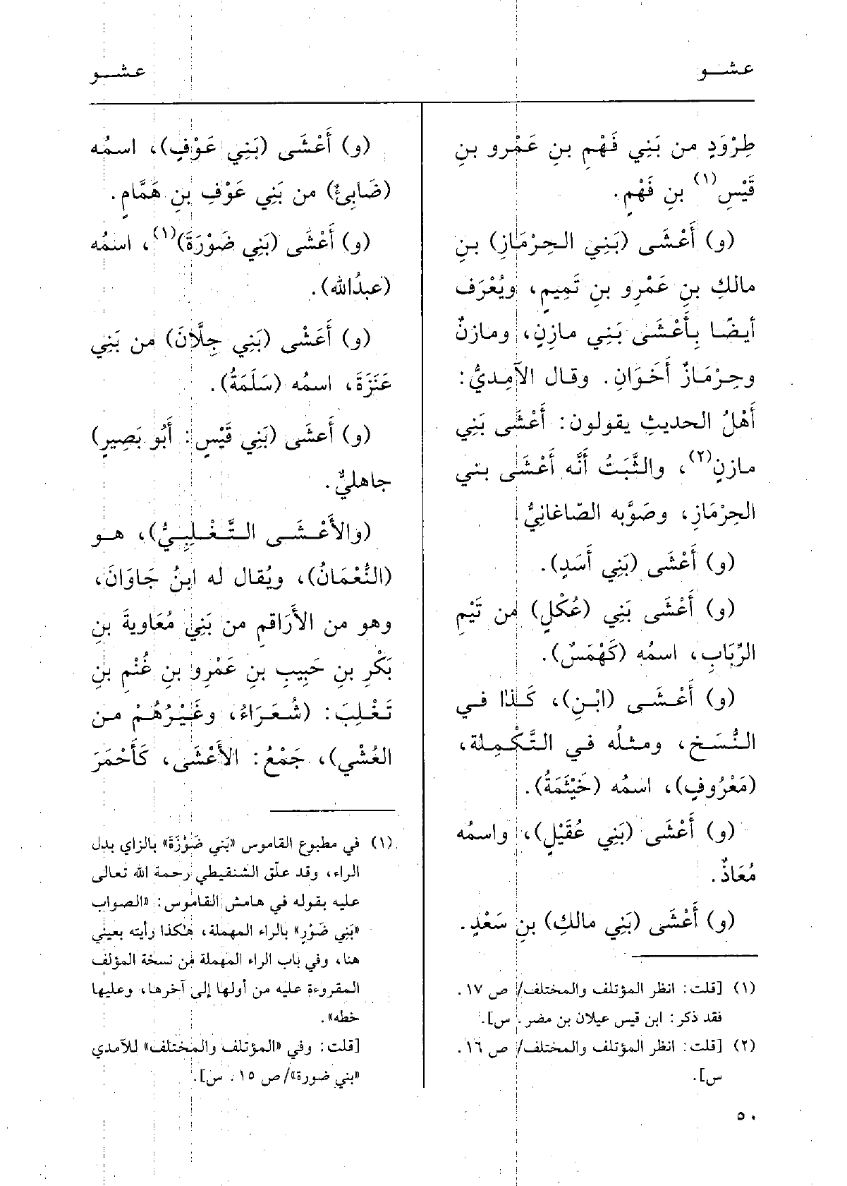 وقالَ الآمديُّ: أَهْلُ الحديثِ يقولونَ: أَعْشَى بَني مازِنٍ، والثَّبْتُ أَنَّه أَعْشَى بَني الحِرْمازِ؛ وصَوّبَه الصَّاغاني.