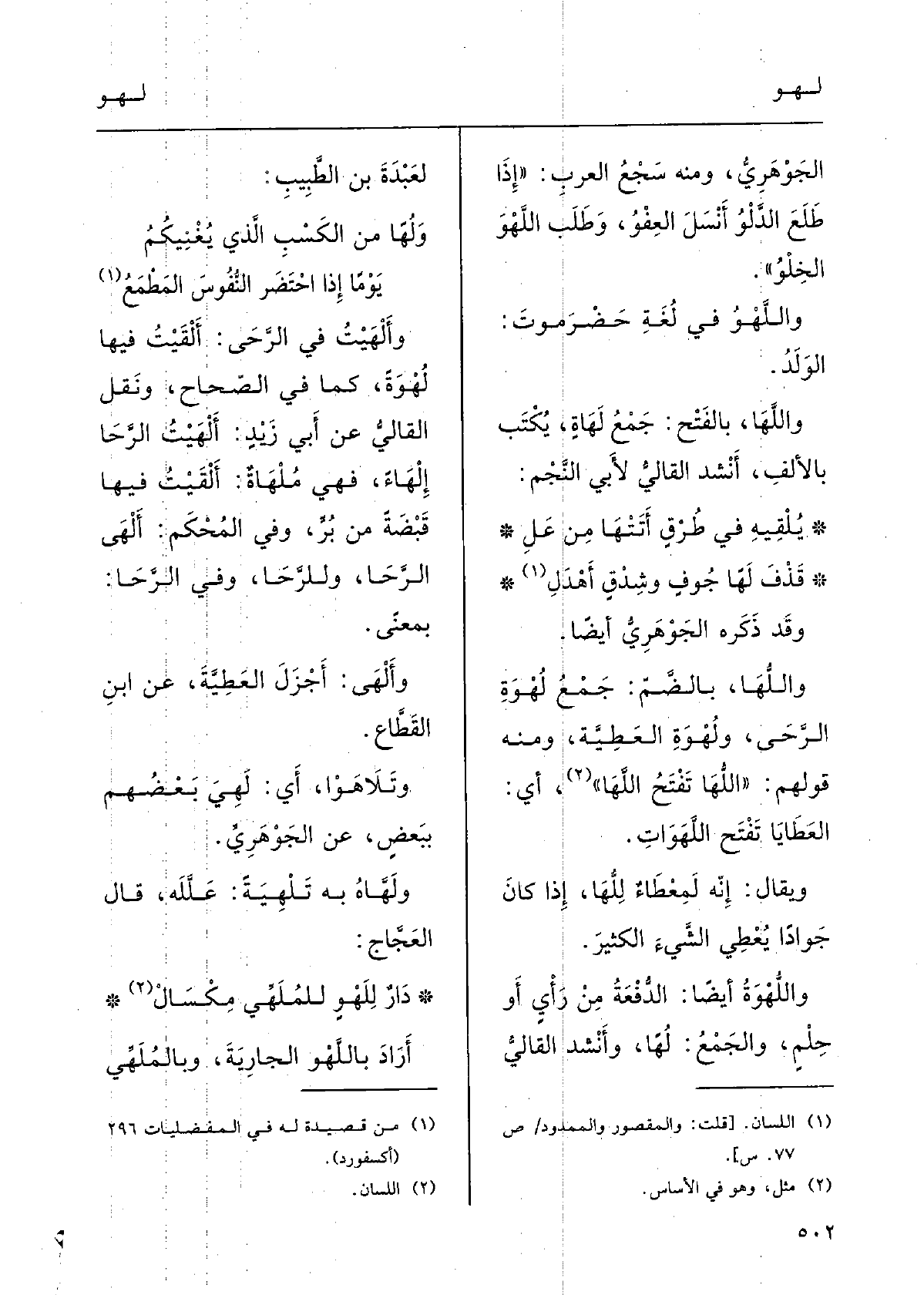 {ولُهاً من الكَسْبِ الَّذِي يُغنيكُمُيَوماً إِذا احتَضَرَ النفوسَ المَطْمَعُ} وأَلْهَيْت فِي الرَّحى: أَلْقَيْت فِيهَا {لُهْوةً: كَمَا فِي الصِّحاح.