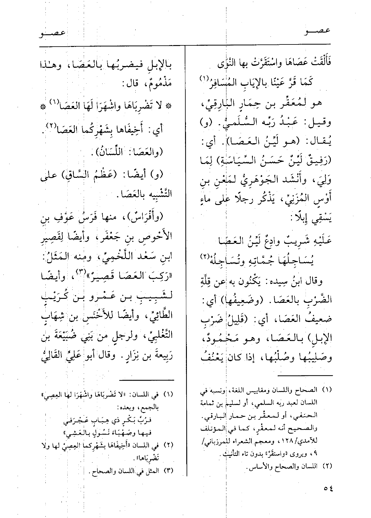 (وأَفْراسٌ) ، مِنْهَا: فَرَسُ عَوْفِ بنِ الأحْوَص بنِ جَعْفرٍ، وأَيْضاً القَصِير بنِ سعْدٍ اللّخَميّ، وَمِنْه المَثَلُ: رَكِبَ العَصا قَصِيرٌ؛ وأَيْضاً الشبيبِ بنِ عَمْرِو بنِ كريبٍ الطَّائي؛ وأَيْضاً للأَخْنَس بنِ شهابٍ التَّغْلَبي؛ ولرَجُلٍ من بَني ضبيعَةَ بنِ ربيعَةَ بنِ نزارٍ.